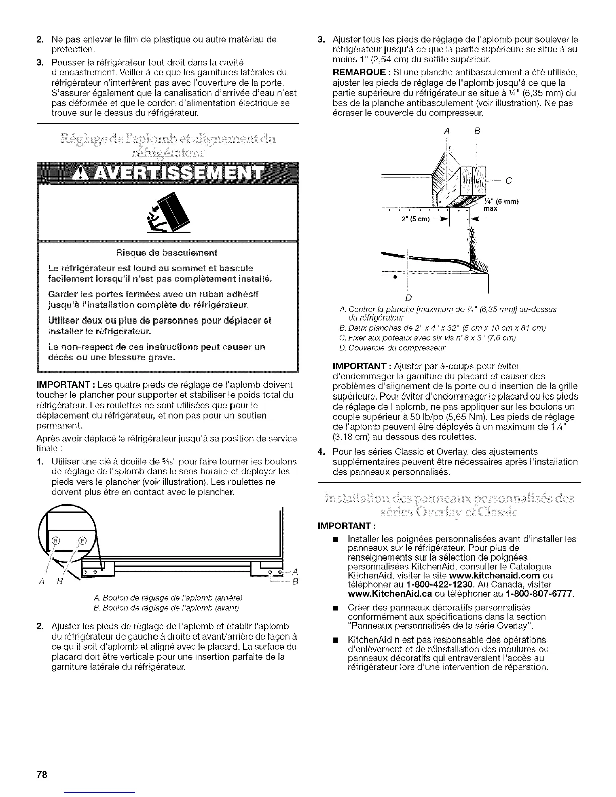 IMPORTANT :Les quatre pieds de r_glage de I'aplomb doivent