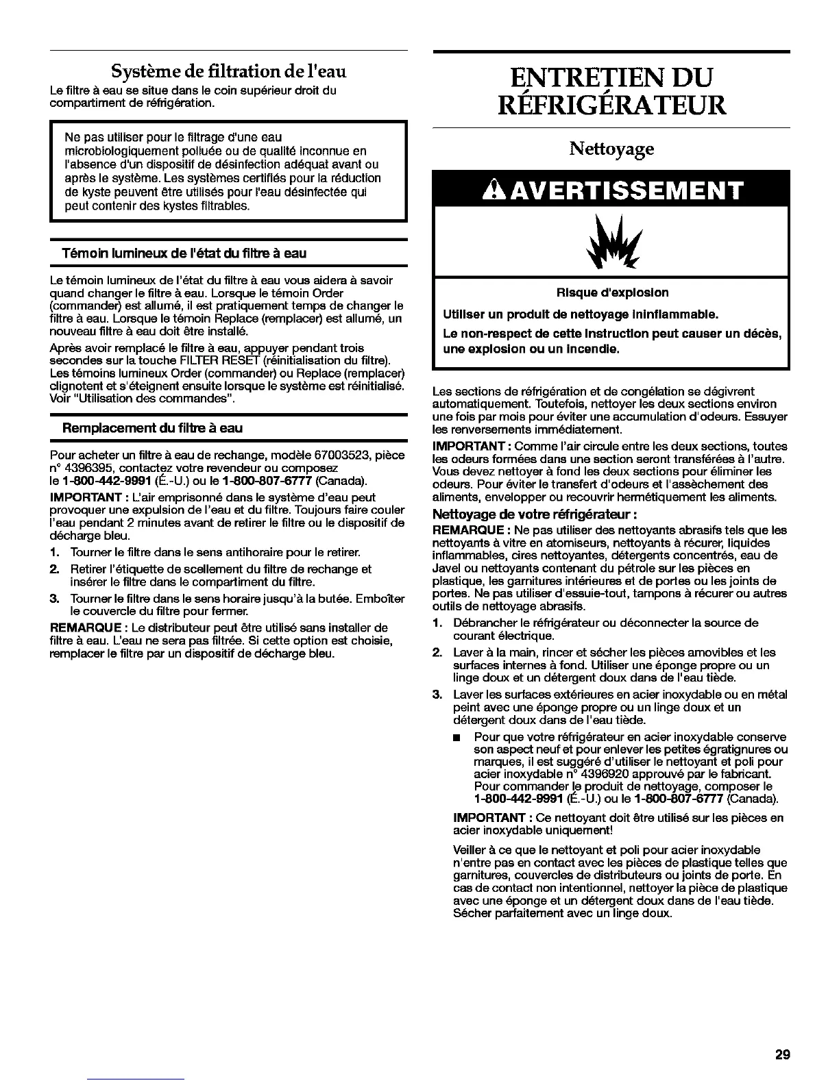 quand changer le filtre & eau. Lorsque Is t6moin Order