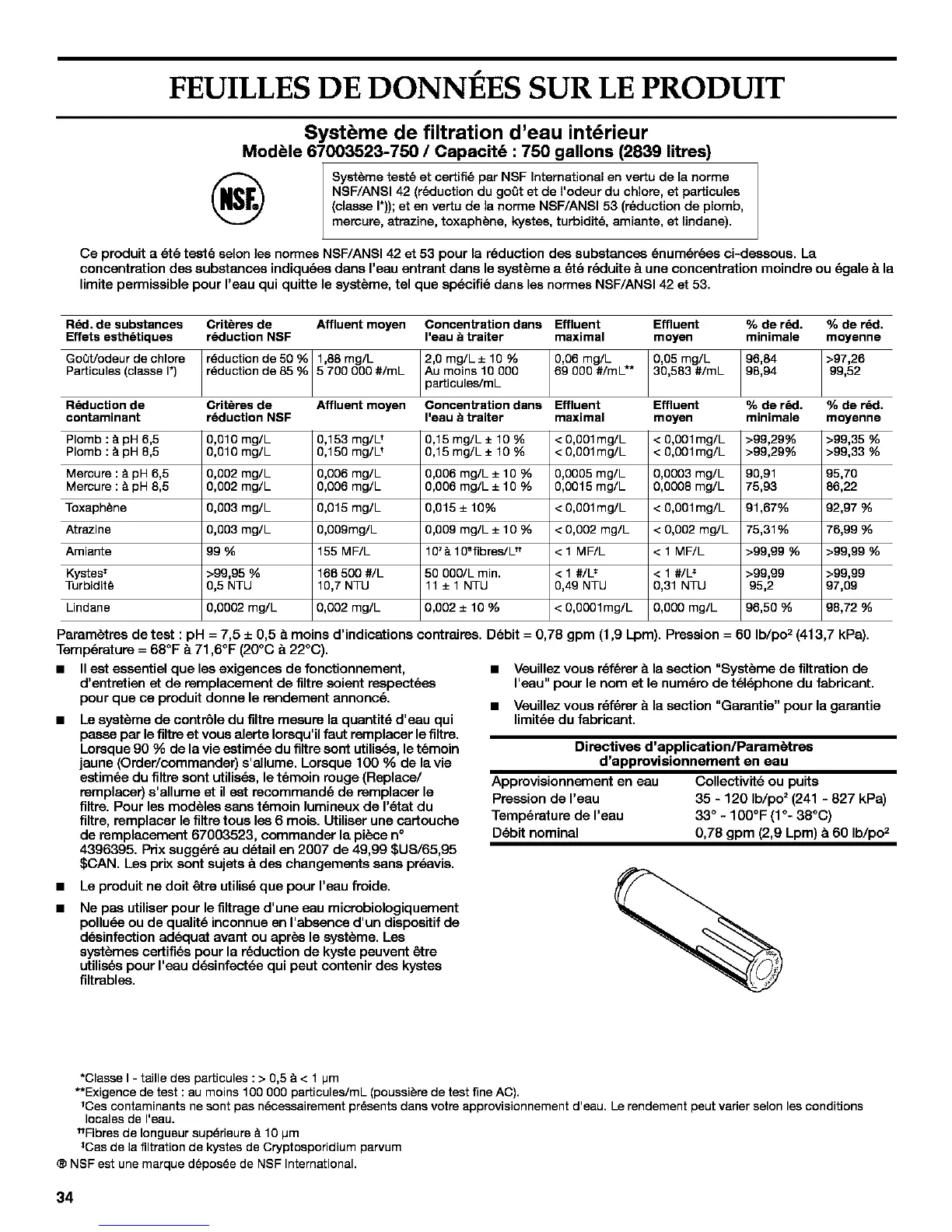 (classe I*)); et en vertu de la norme NSF/ANSI 53 (r6duction de plomb,