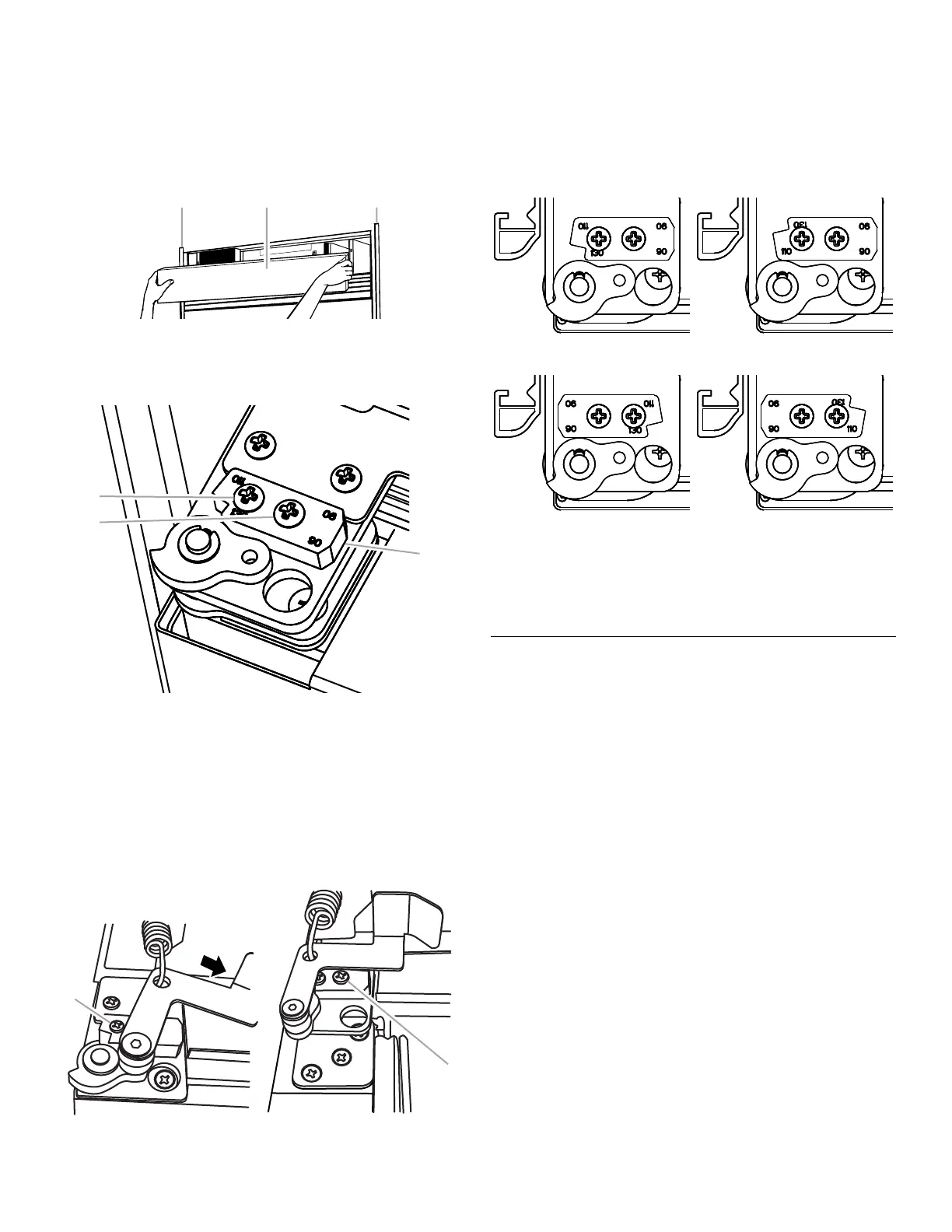 7. Réinstaller les vis de la butée de porte; serrer les vis.