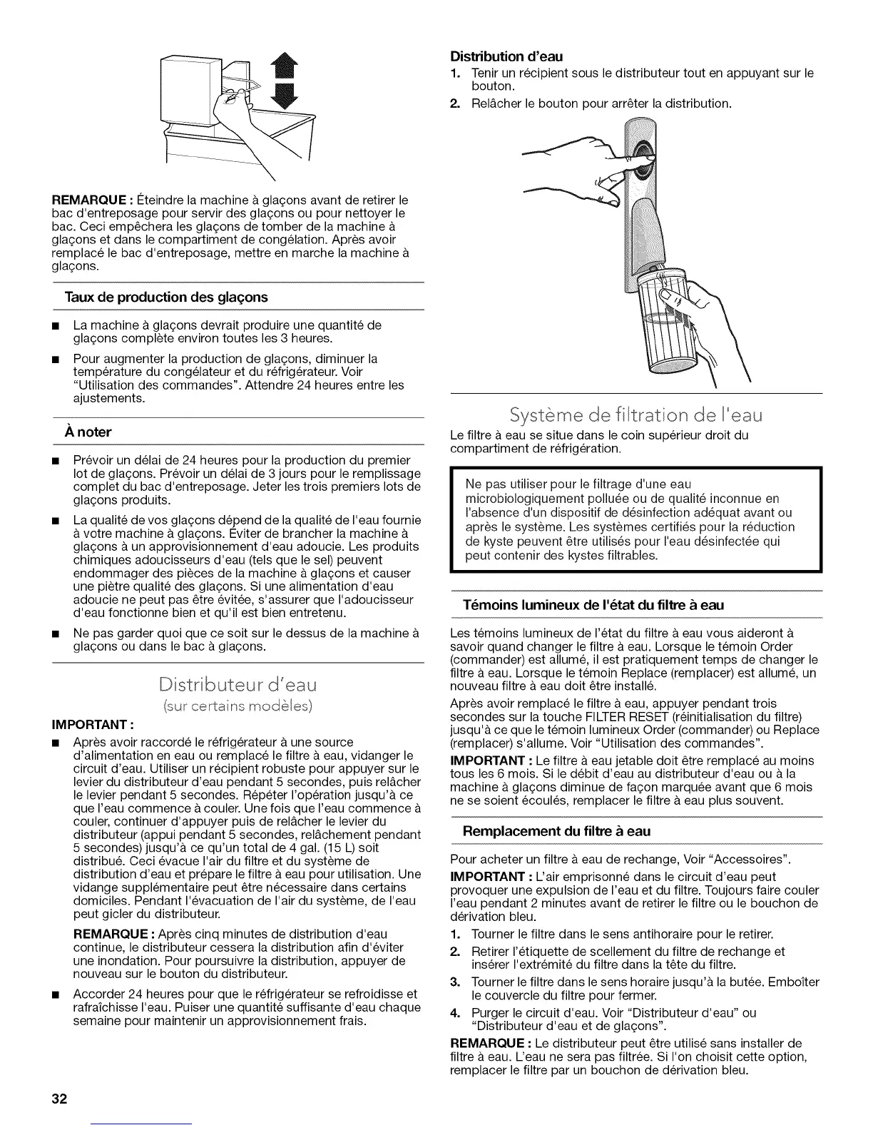 IMPORTANT : Le filtre & eau jetable doit 6tre remplace au moins