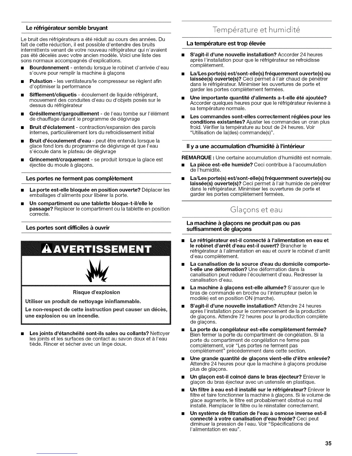 REMARQUE : Une certaine accumulation d'humidite est normale.