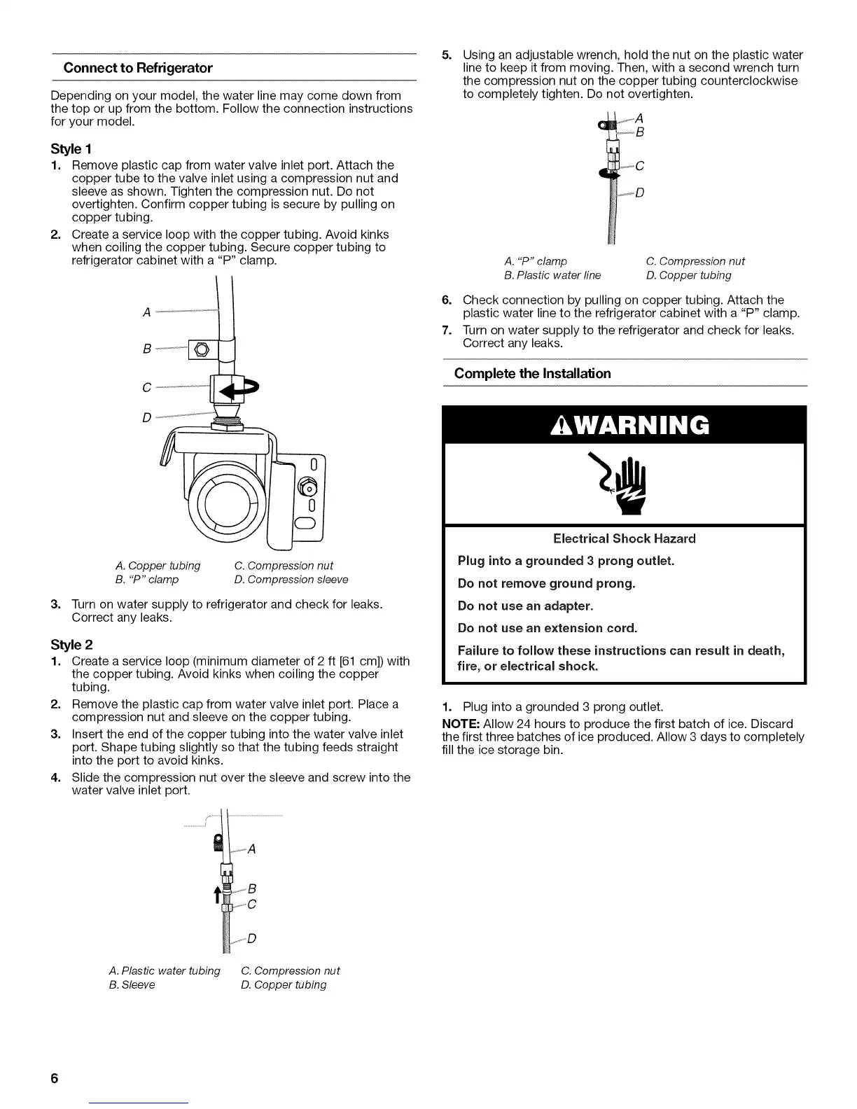 overtighten. Confirm copper tubing is secure by pulling on
