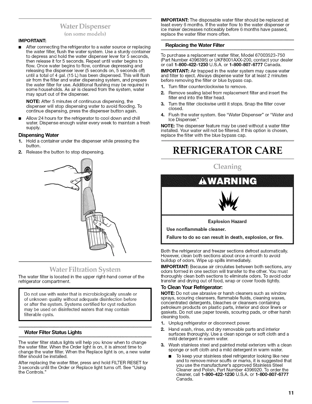 To purchase a replacement water filter, Model 67003523-750