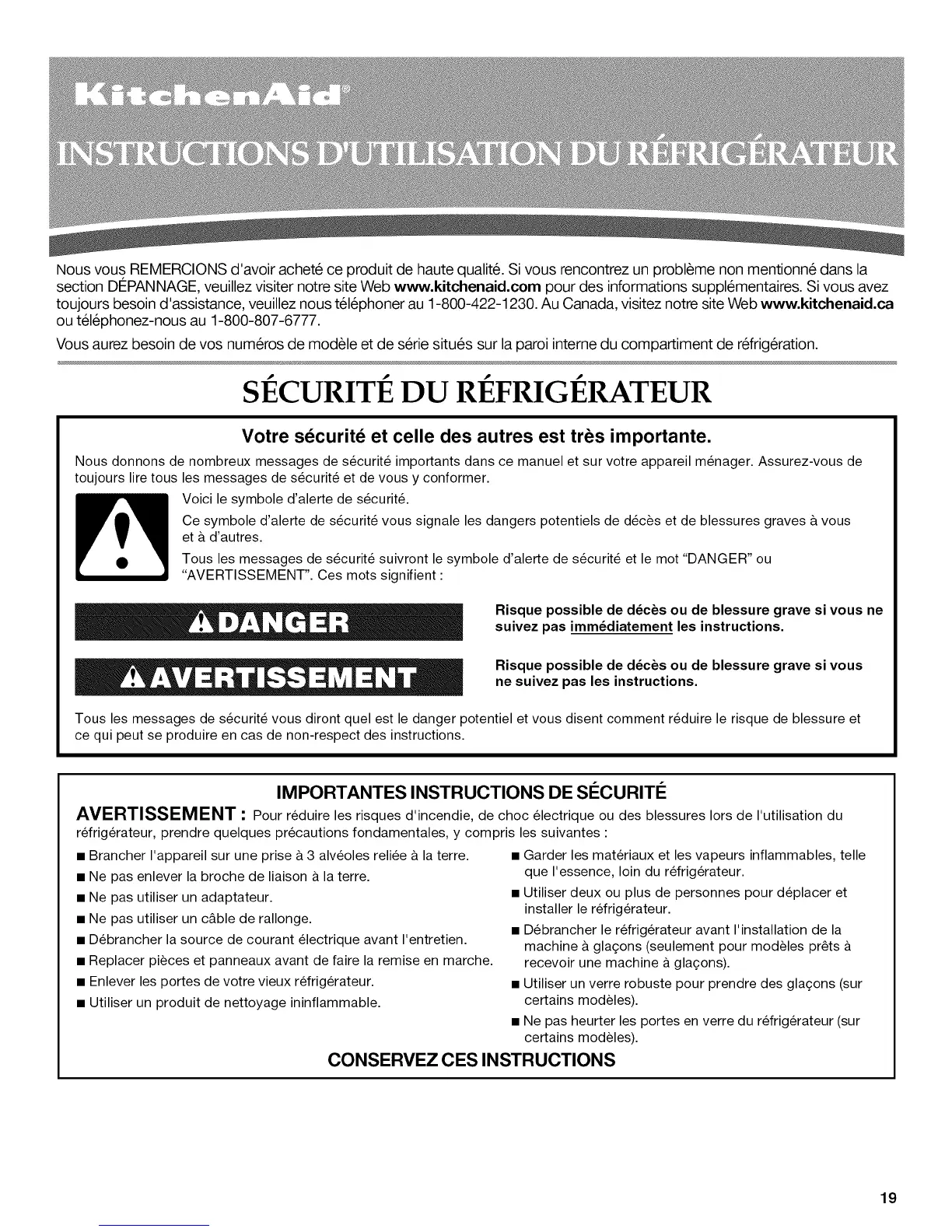 section DI_PANNAGE, veuillez visiter notre site Web www.kitchenaid.com pour des informations supplementaires. Si vous avez