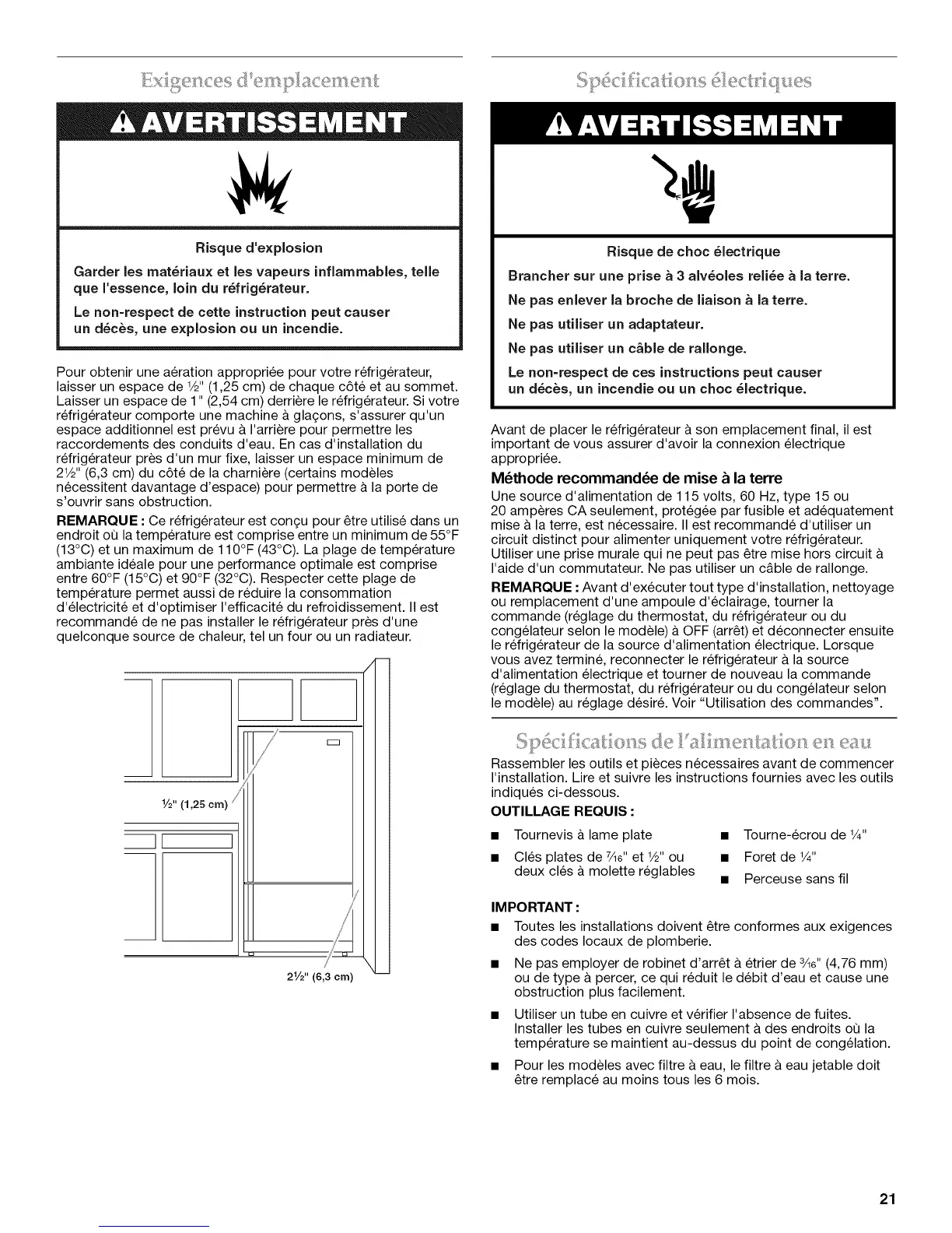 Laisser un espace de 1" (2,54 cm) derriere le refrig6rateur. Si votre