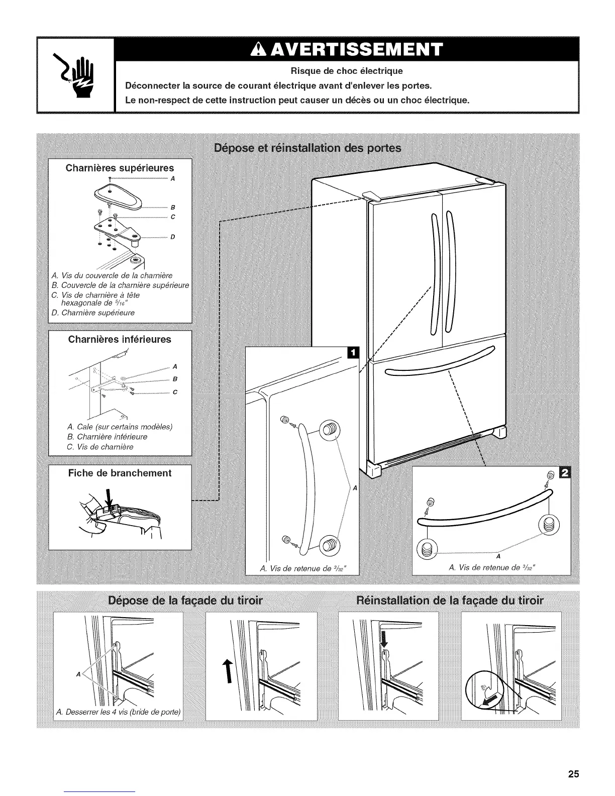 D_connecter la source de courant _lectrique avant d'enlever les portes.