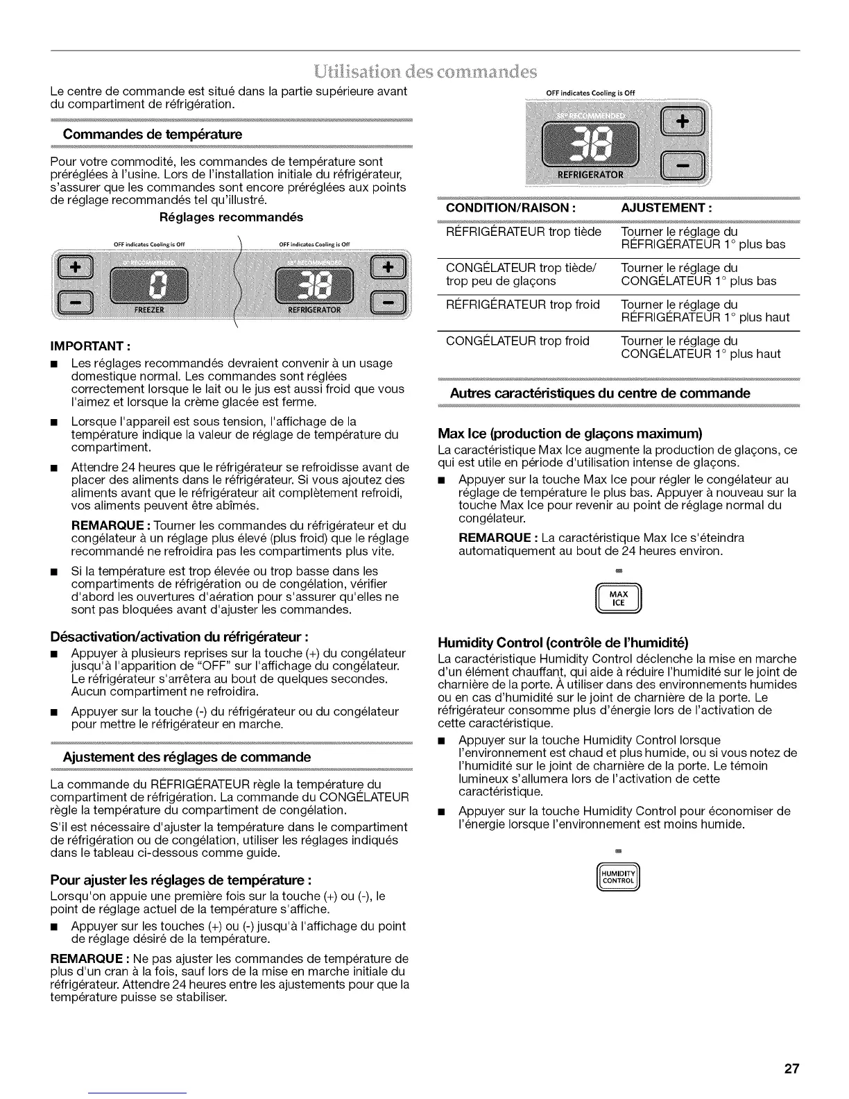 REMARQUE : Tourner les commandes du refrig6rateur et du