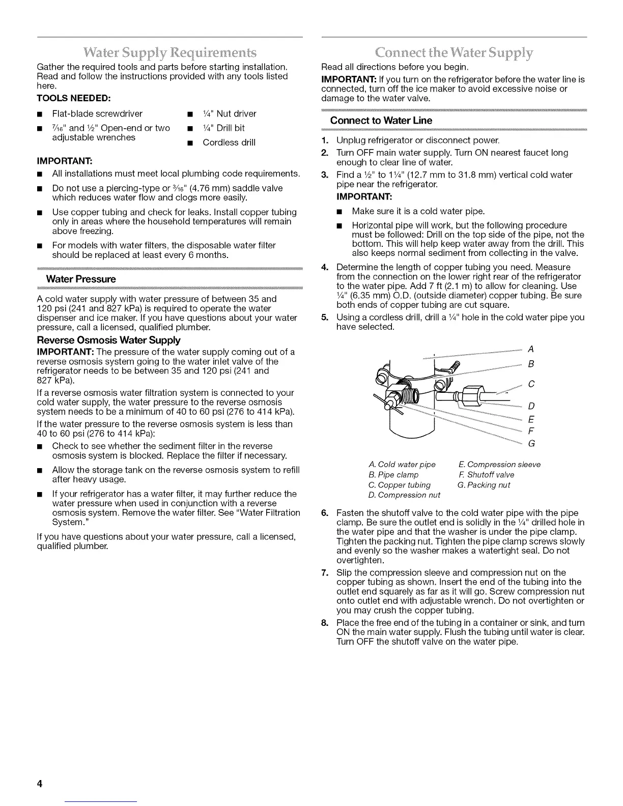 • Do not use a piercing-type or 3/le"(4.76 mm) saddle valve