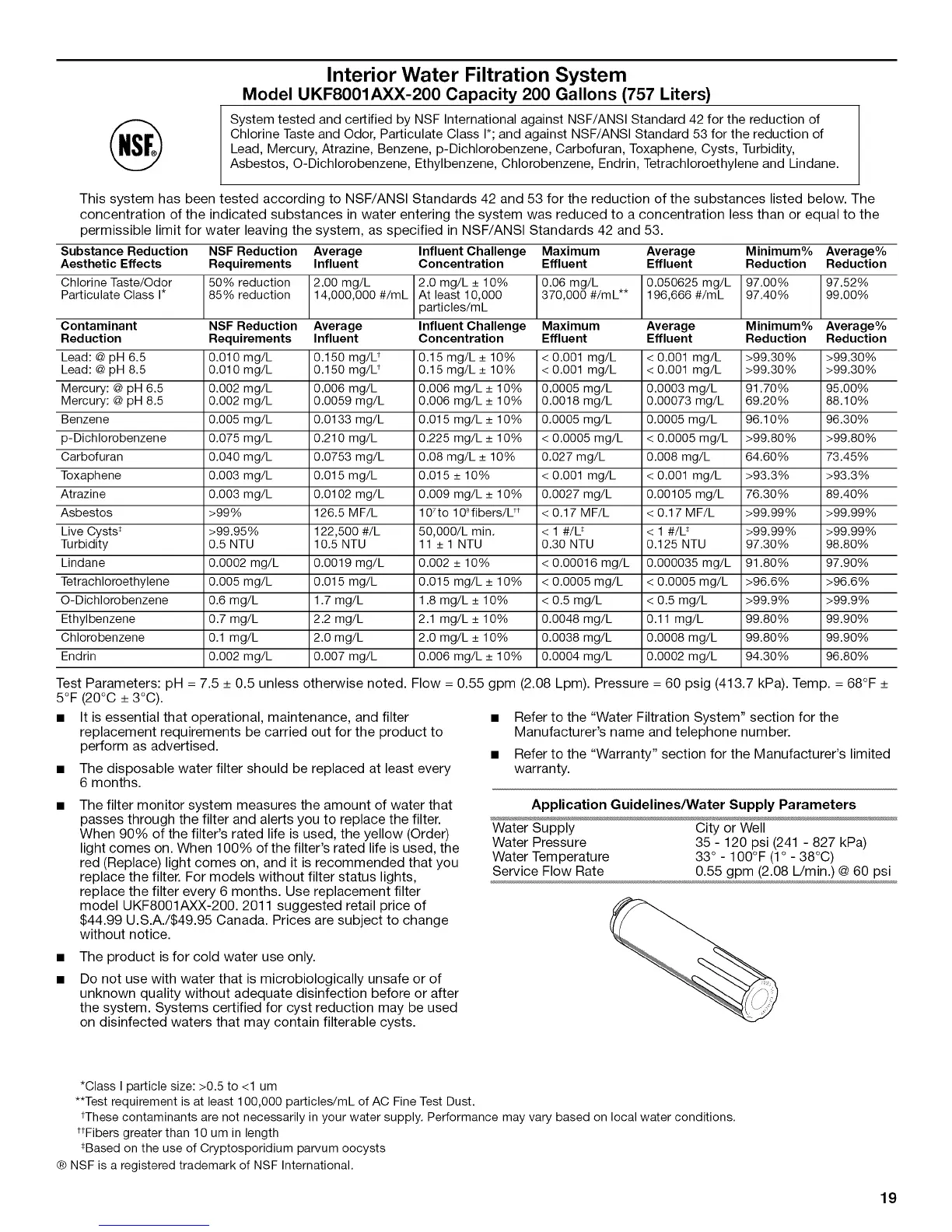 Chlorine Taste and Odor, Particulate Class I*; and against NSF/ANSl Standard 53 for the reduction of