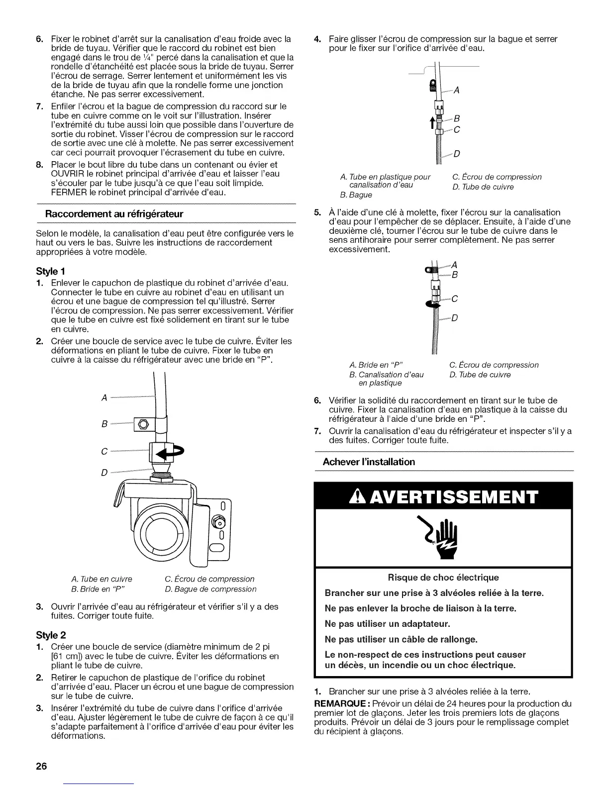 d'arrivee d'eau. Placer un ecrou et une bague de compression