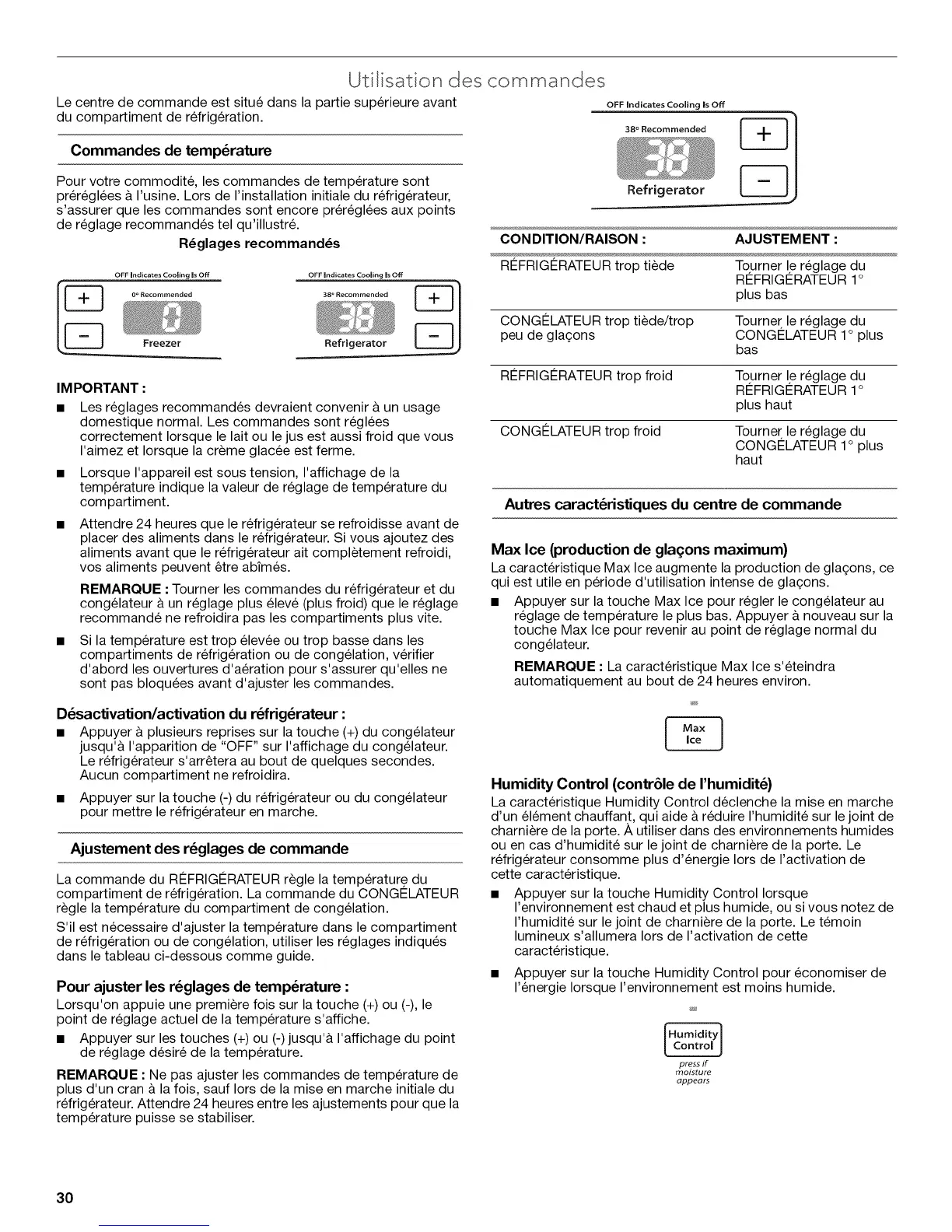 REMARQUE :Tourner les commandes du refrigerateur et du