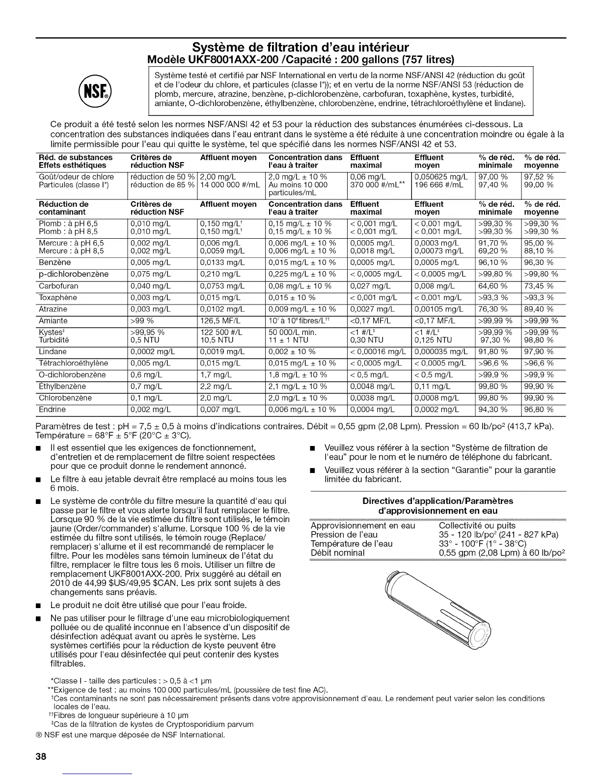 tCes contaminants ne sont pas necessairement presents dans votre approvisionnement d'eau. Le rendement pout varier solon los conditions