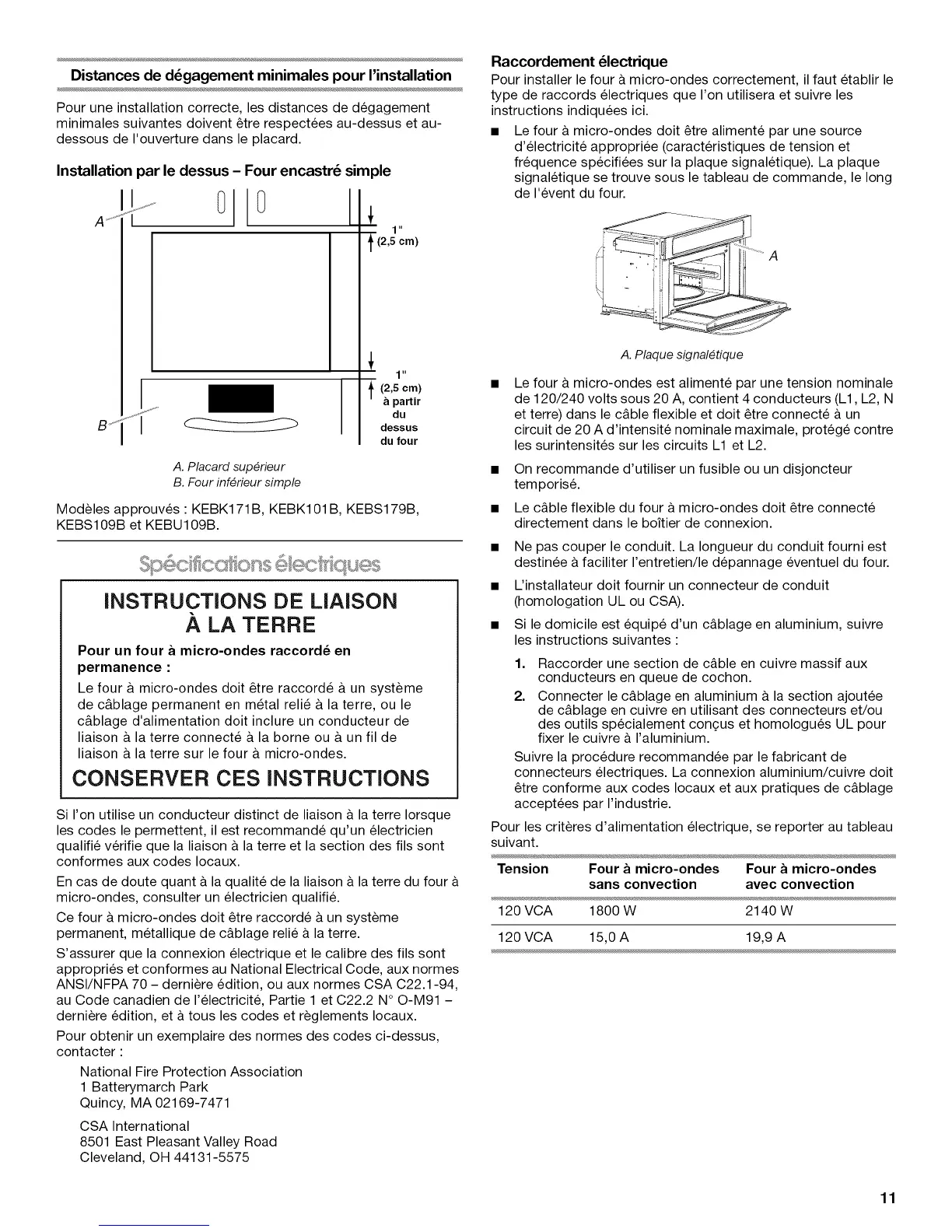ANSI/NFPA 70 - derniere edition, ou aux normes CSA C22.1-94,