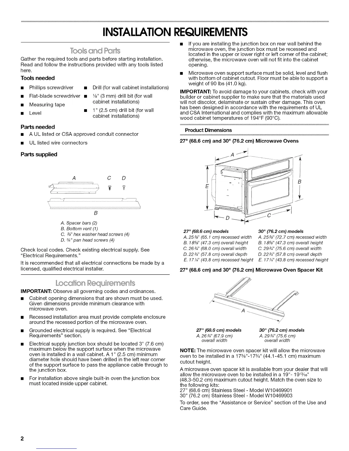 27" (68.6 cm) and 30" (76.2 cm) Microwave Ovens