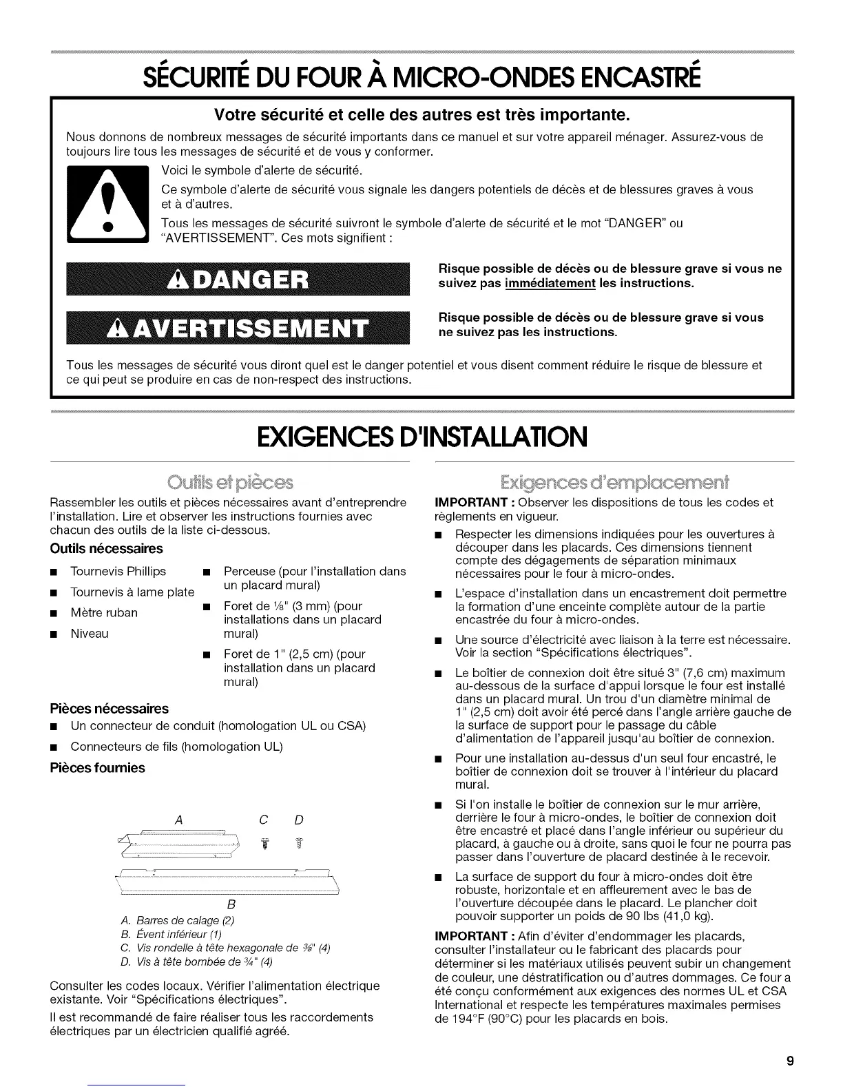 Tousles messages de securite suivront le symbole d'alerte de securite et le mot "DANGER" ou