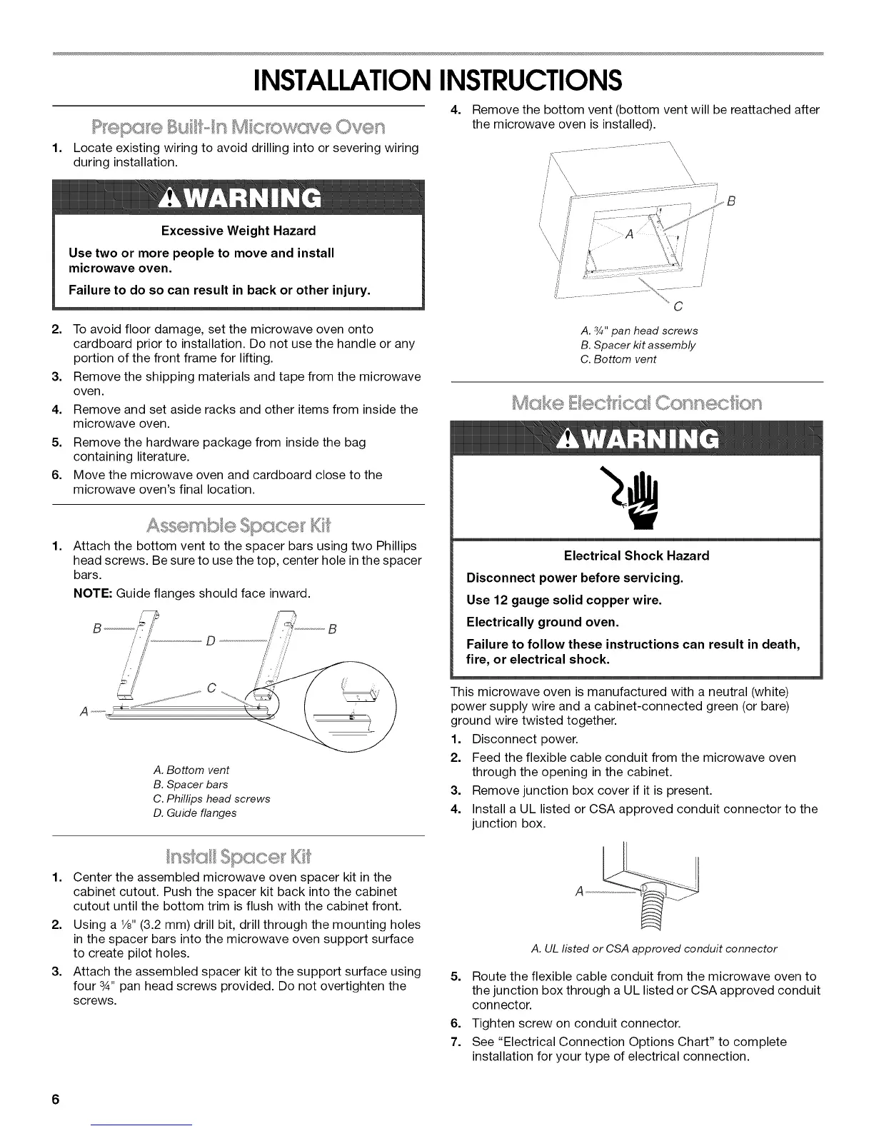 1. Center the assembled microwave oven spacer kit in the