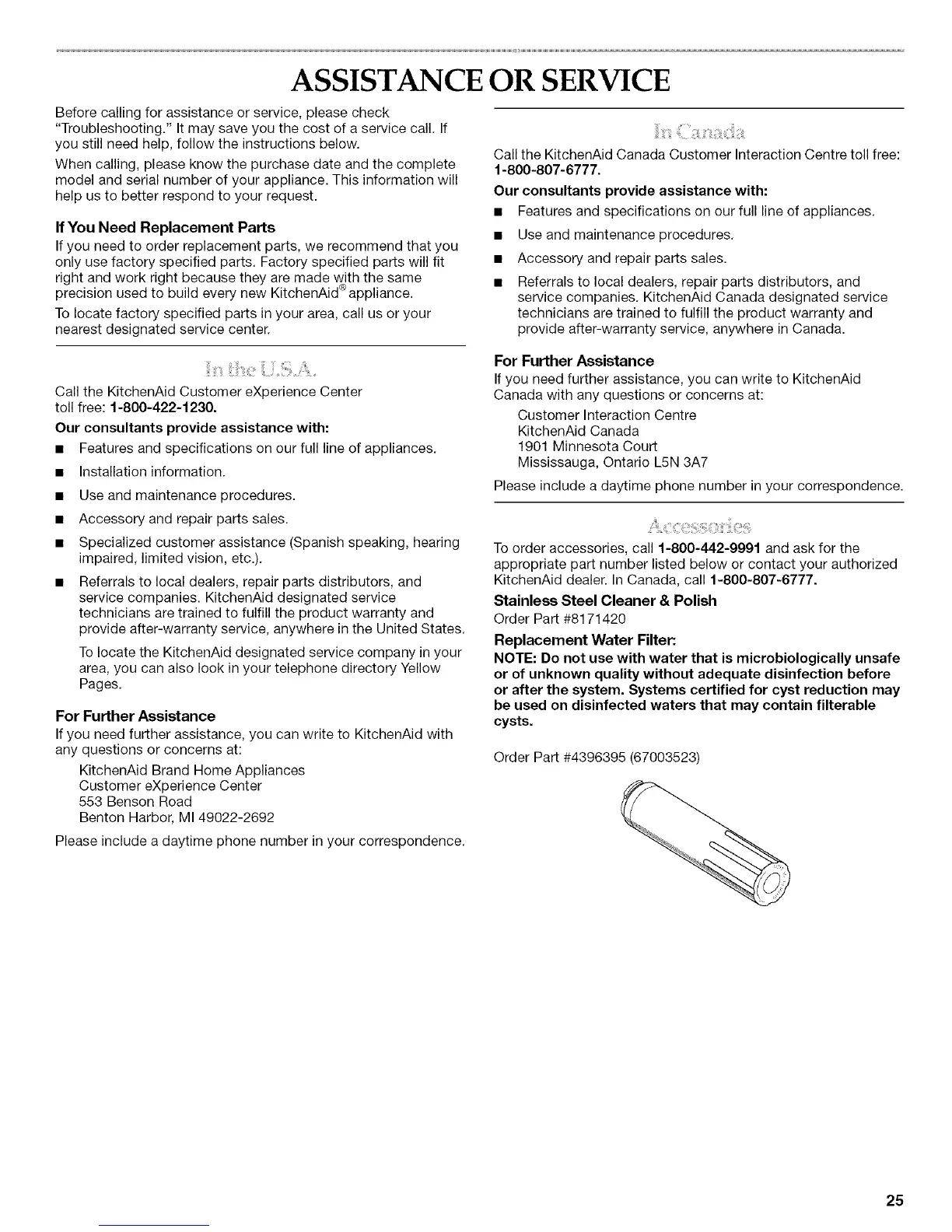 KitchenAid dealer. In Canada, call 1-800-807-6777.