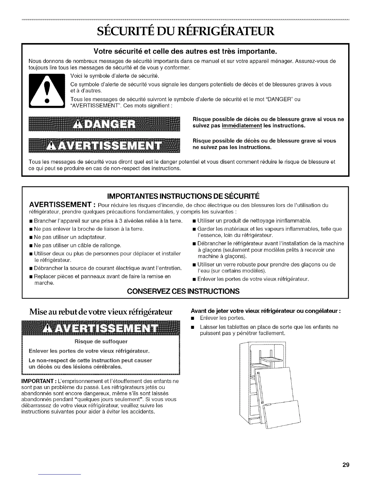 Nous donnons de nombreux messages de securite importants dans ce manuel et sur votre appareil menager. Assurez-vous de