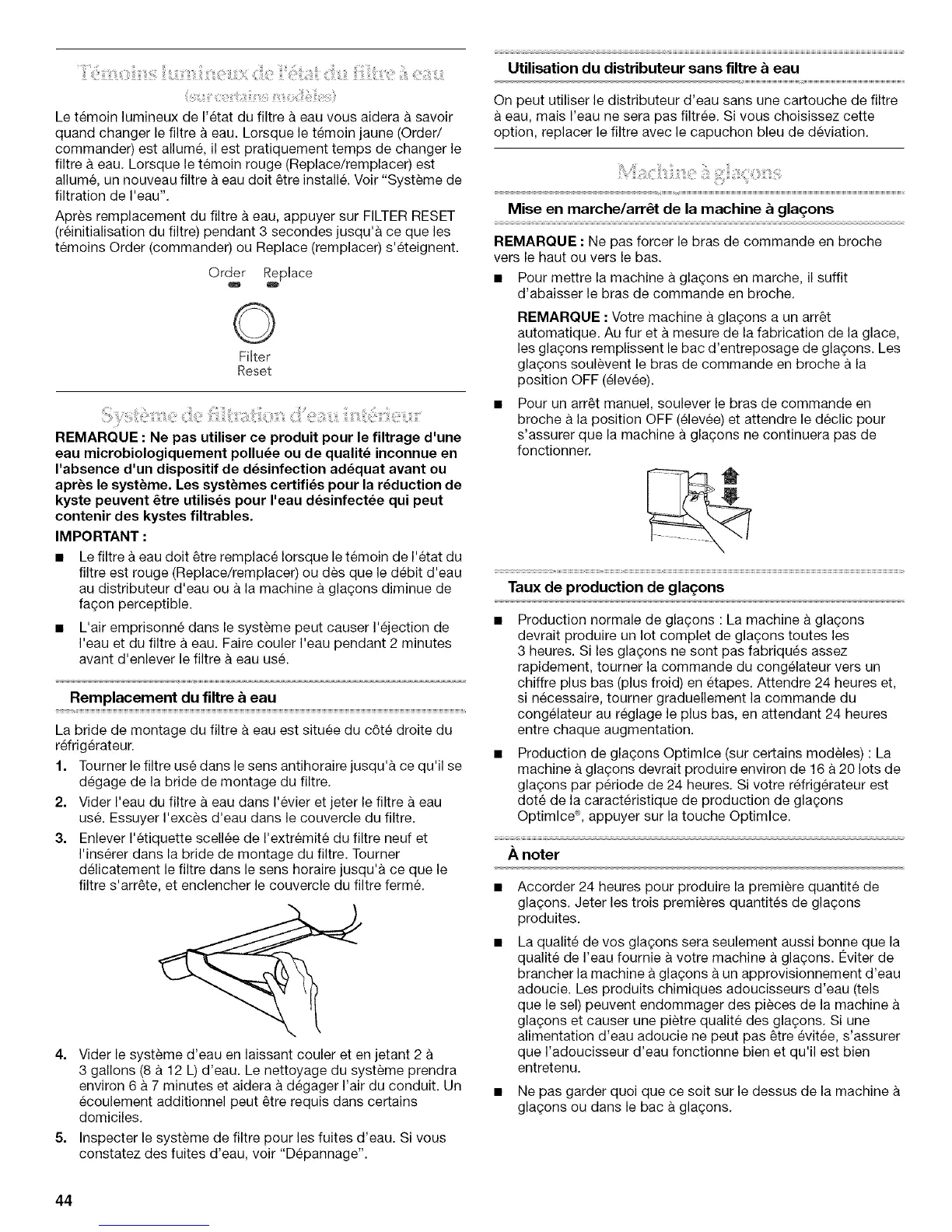 • Le filtre a eau doit _tre remplace Iorsque le temoin de I'etat du