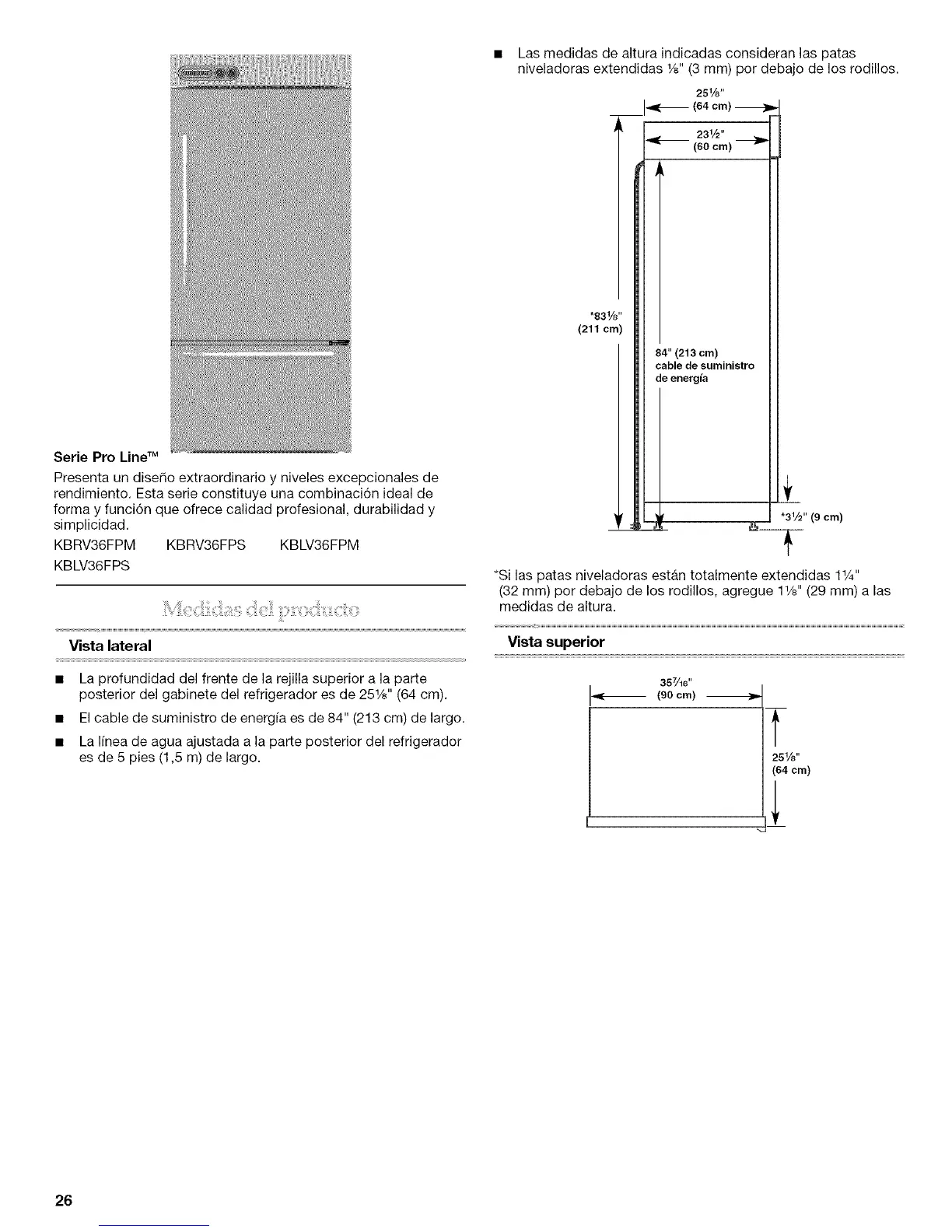 posterior del gabinete del refrigerador es de 251/8'' (64 cm).