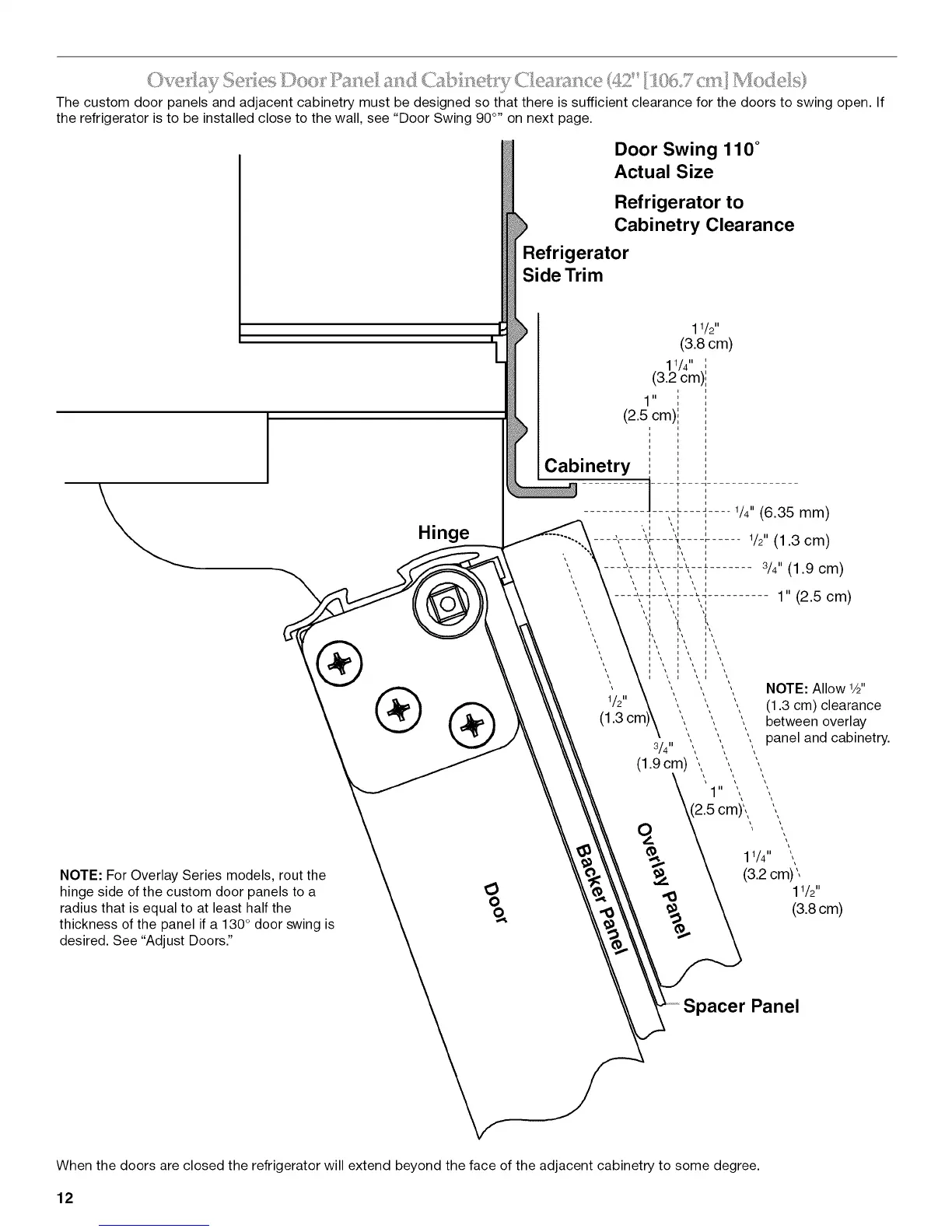 The custom door panels and adjacent cabinetry must be designed so that there is sufficient clearance for the doors to swing open. If