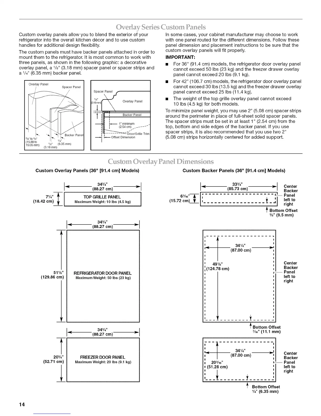 Custom Overlay Panels (36" [91.4 cm] Models) Custom Backer Panels (36" [91.4 cm] Models)