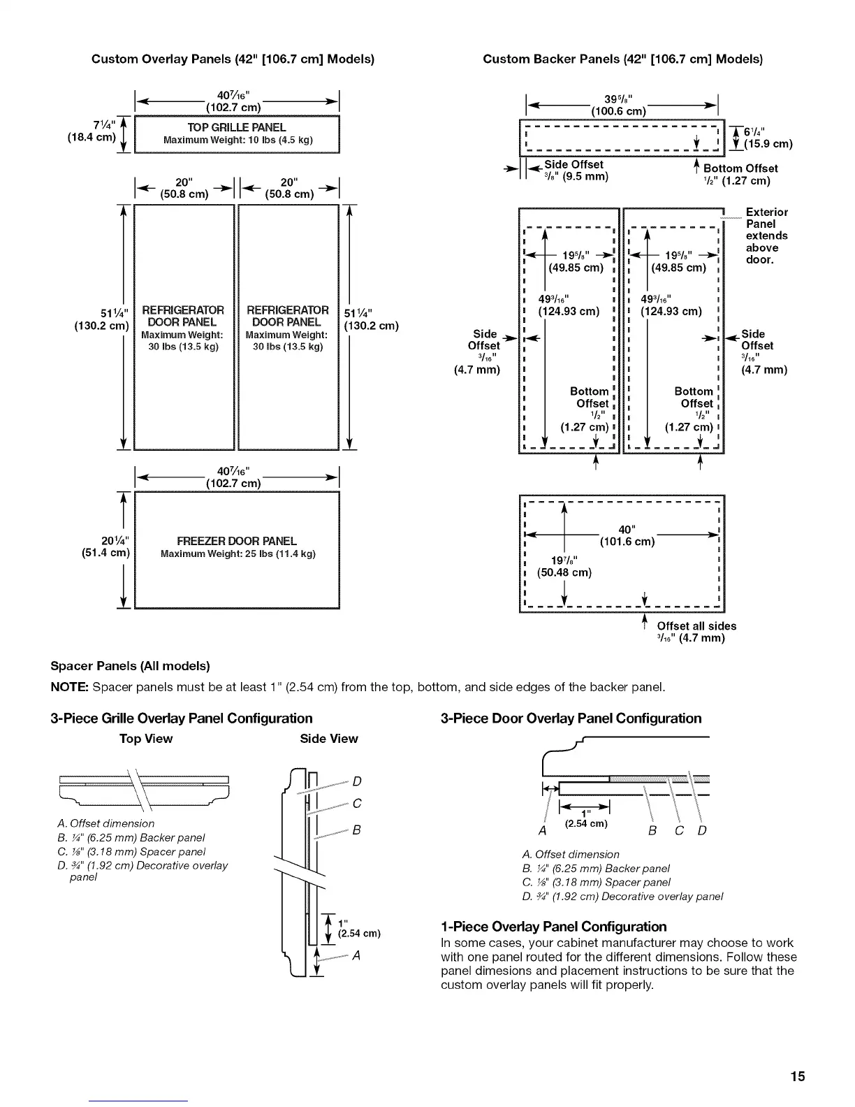 Custom Overlay Panels (42" [106.7 cm] Models) Custom Backer Panels (42" [106.7 cm] Models)