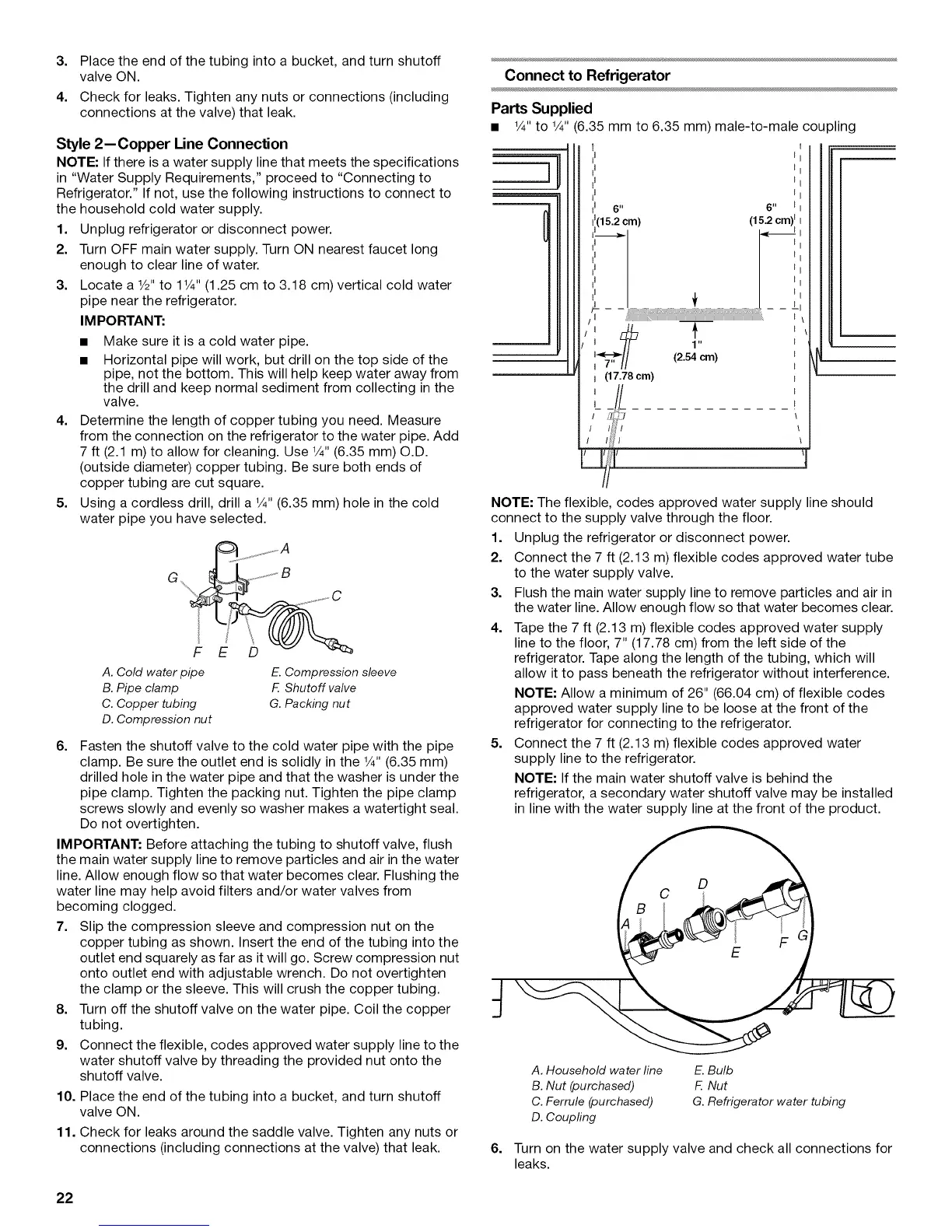 C. Ferrule (purchased) G. Refrigerator water tubing