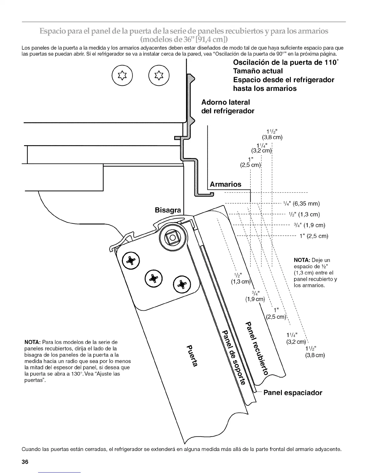 Cuando las puertas estan cerradas, el refrigerador se extenderA en alguna medida m_s alia de la parte frontal del armario adyacente.
