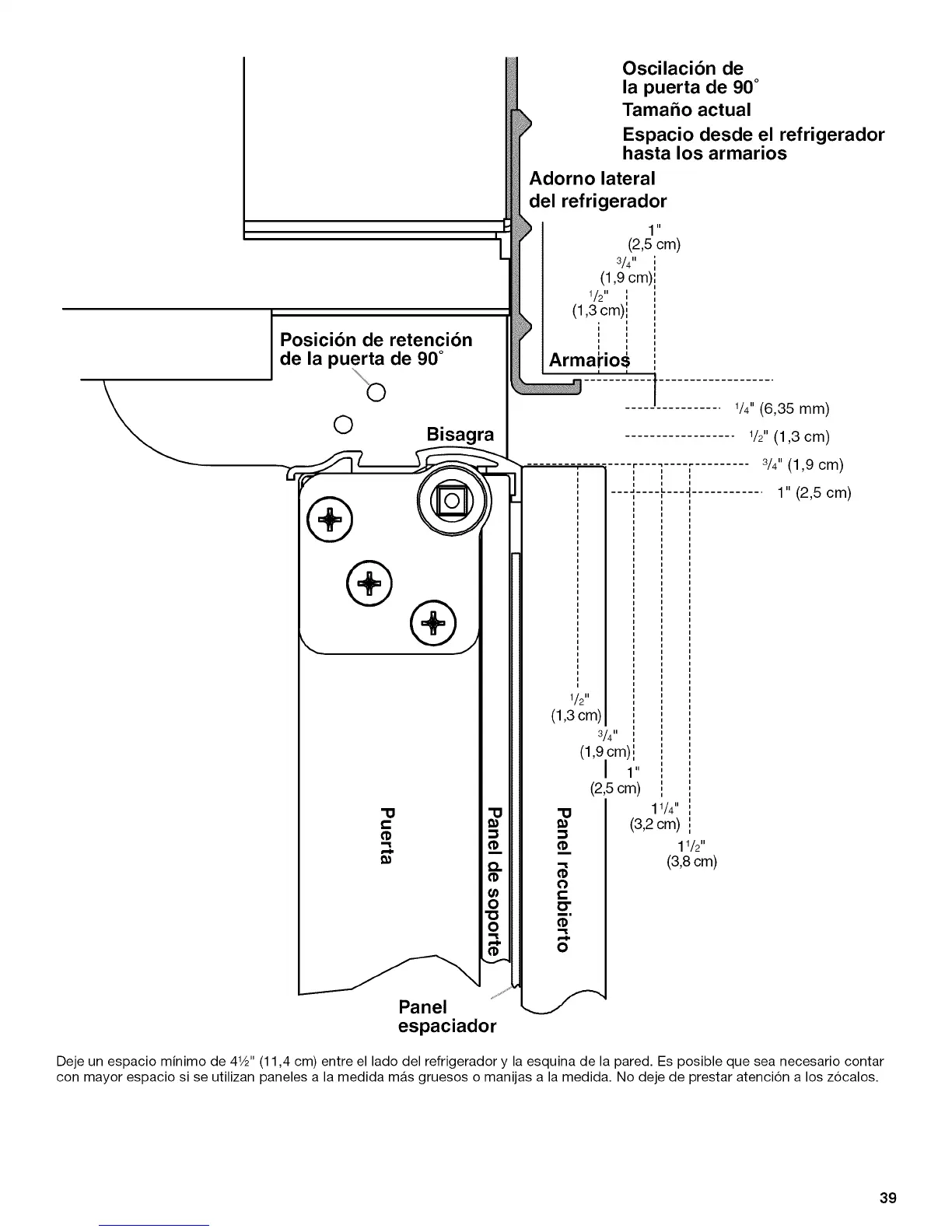 Deje un espacio minimo de 41/2'' (11,4 cm) entre el lado del refrigerador y la esquina de la pared. Es posible que sea necesario contar