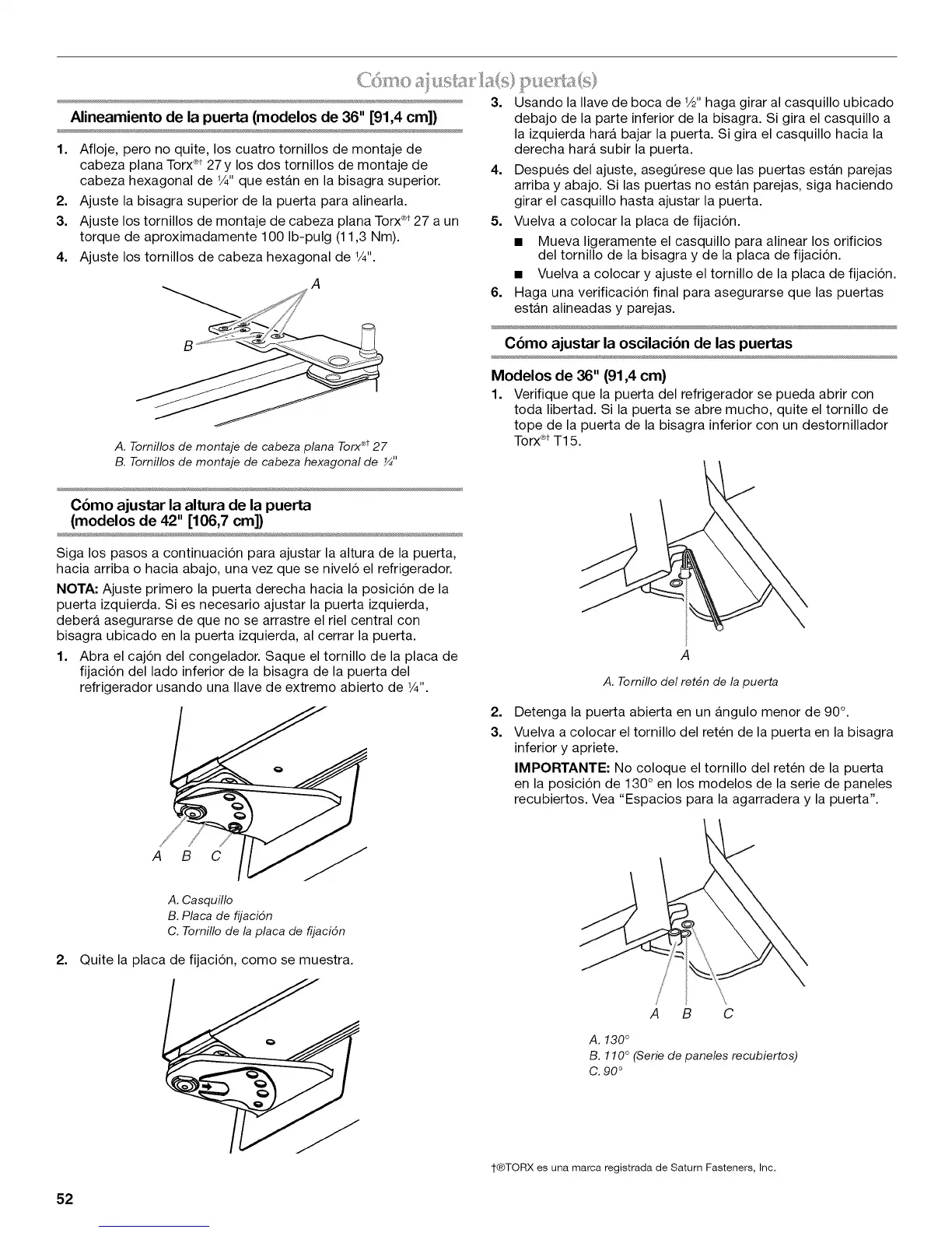 Alineamiento de la puerta (modelos de 36" [91,4 cm])