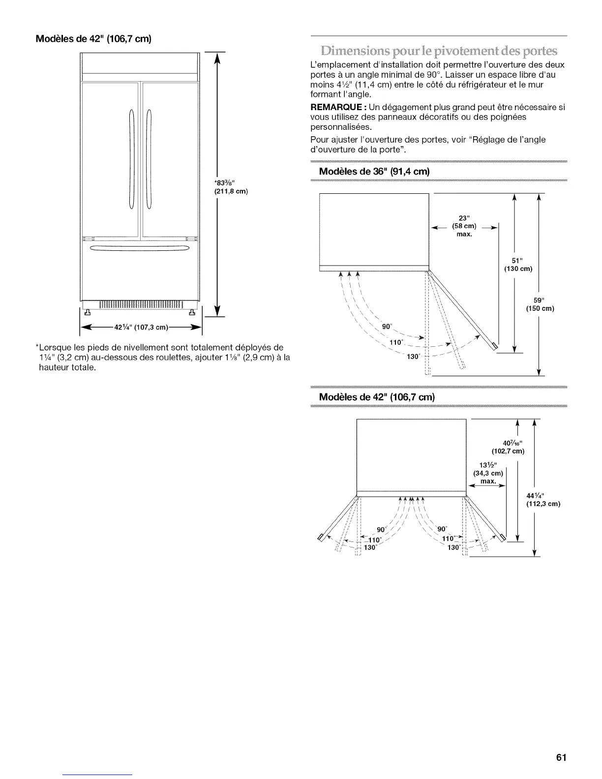 moins 41/2'' (11,4 cm) entre le c6te du refrig6rateur et lemur