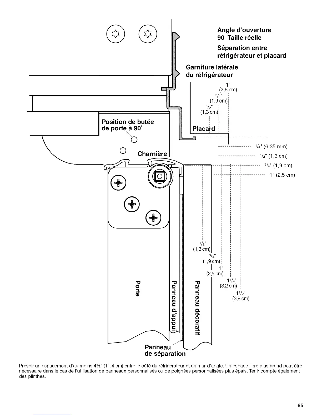 Prevoir un espacement d'au moins 41/2"(11,4 cm) entre le c6te du refrig6rateur et un mur d'angle. Un espace libre plus grand peut _tre