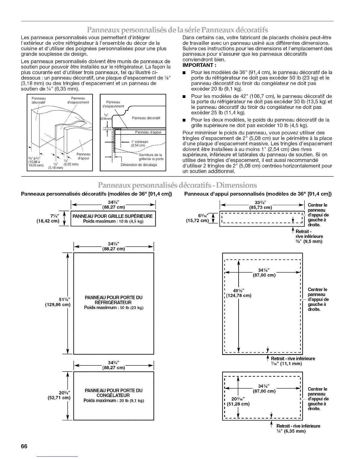 • Pour les modeles de 36" (91,4 cm), le panneau decoratif de la