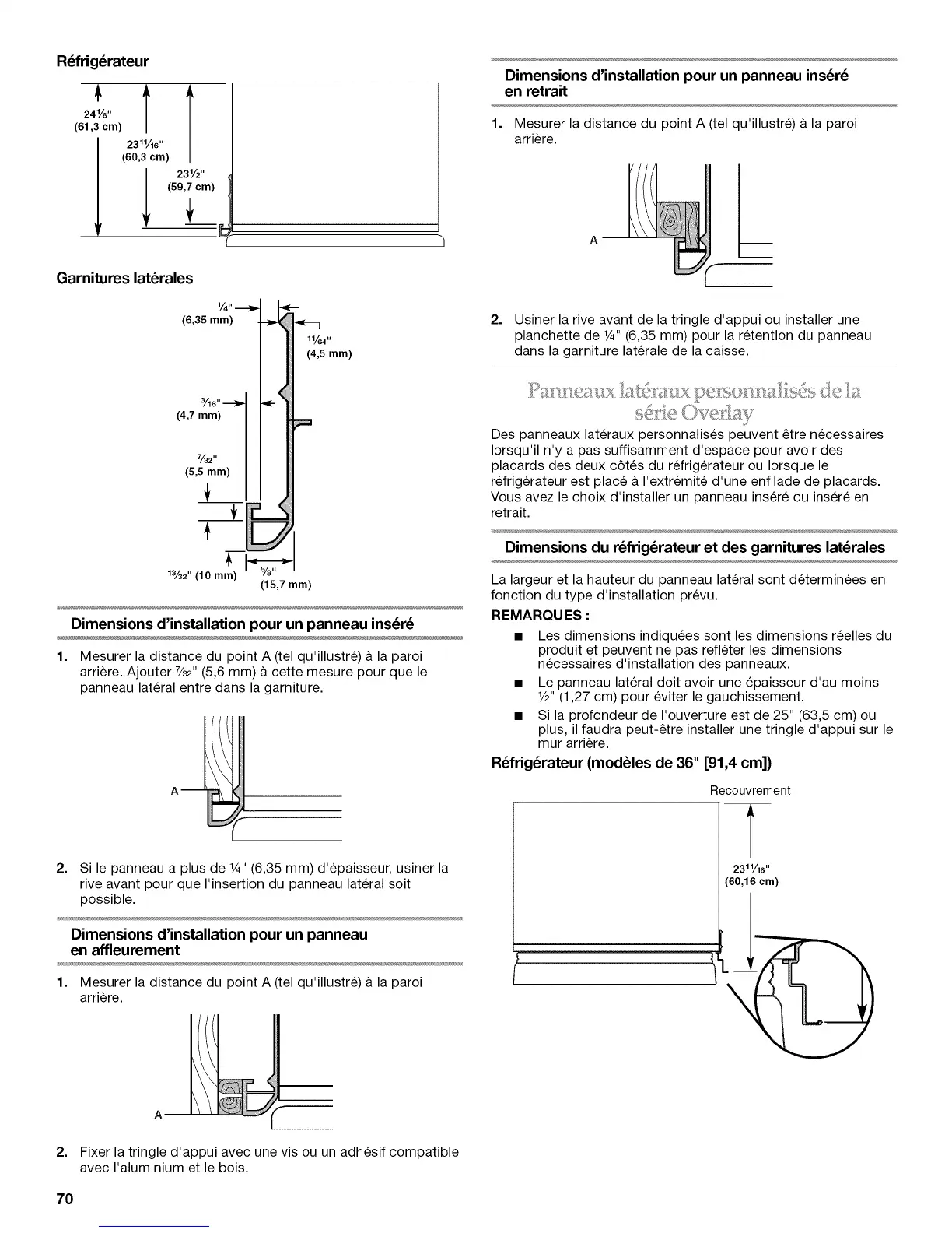 Dimensions du r_frig_rateur et des garnitures lat_rales