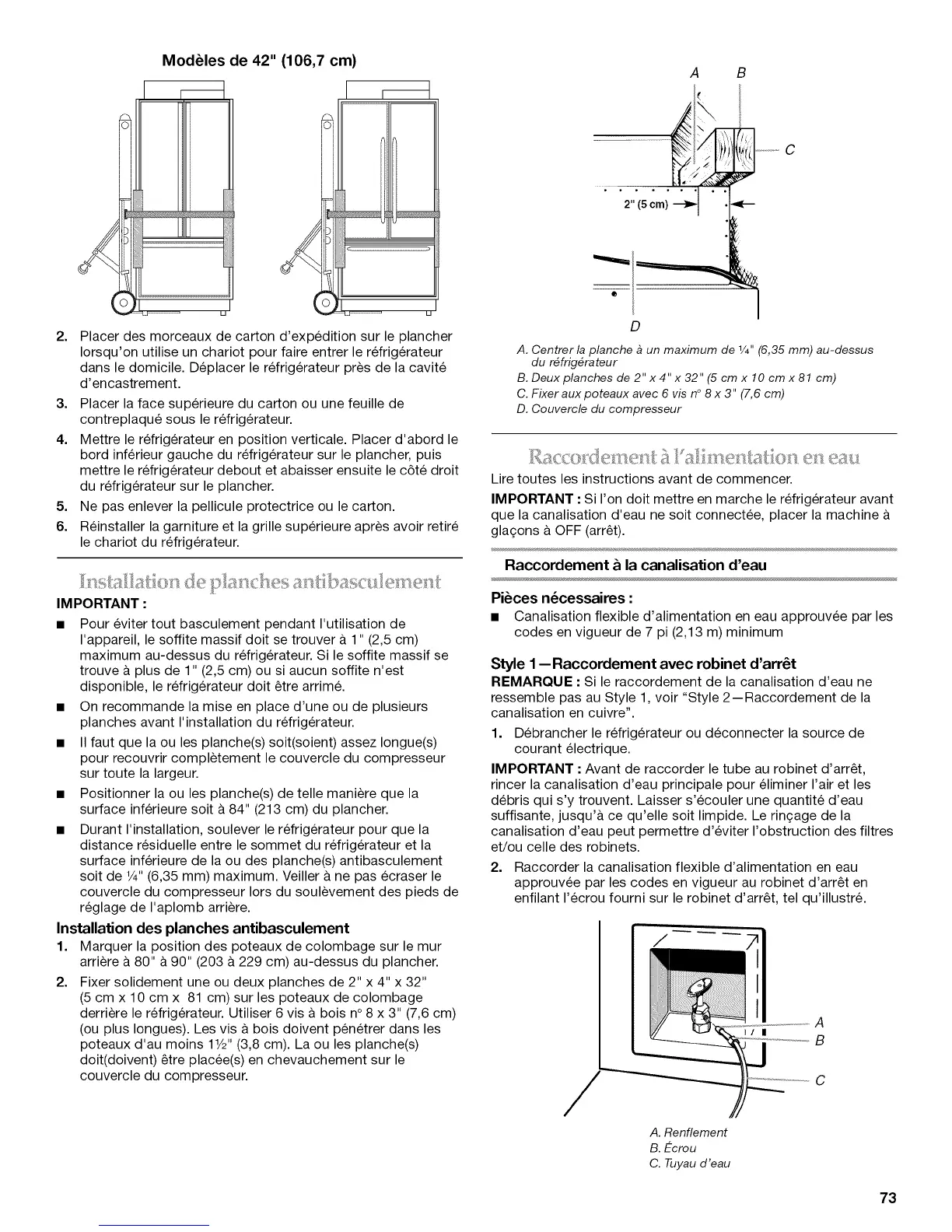 IMPORTANT •Avant de raccorder le tube au robinet d'arr6t,