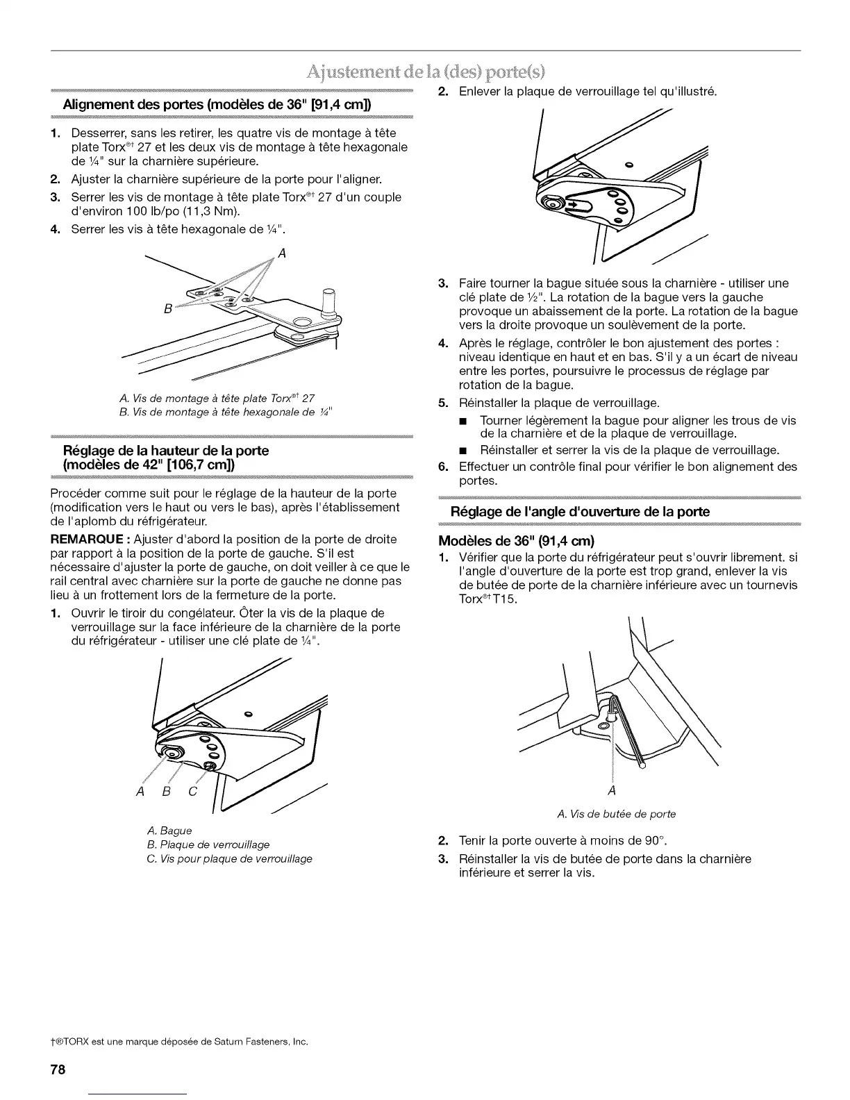 REMARQUE • Ajuster d'abord la position de la porte de droite