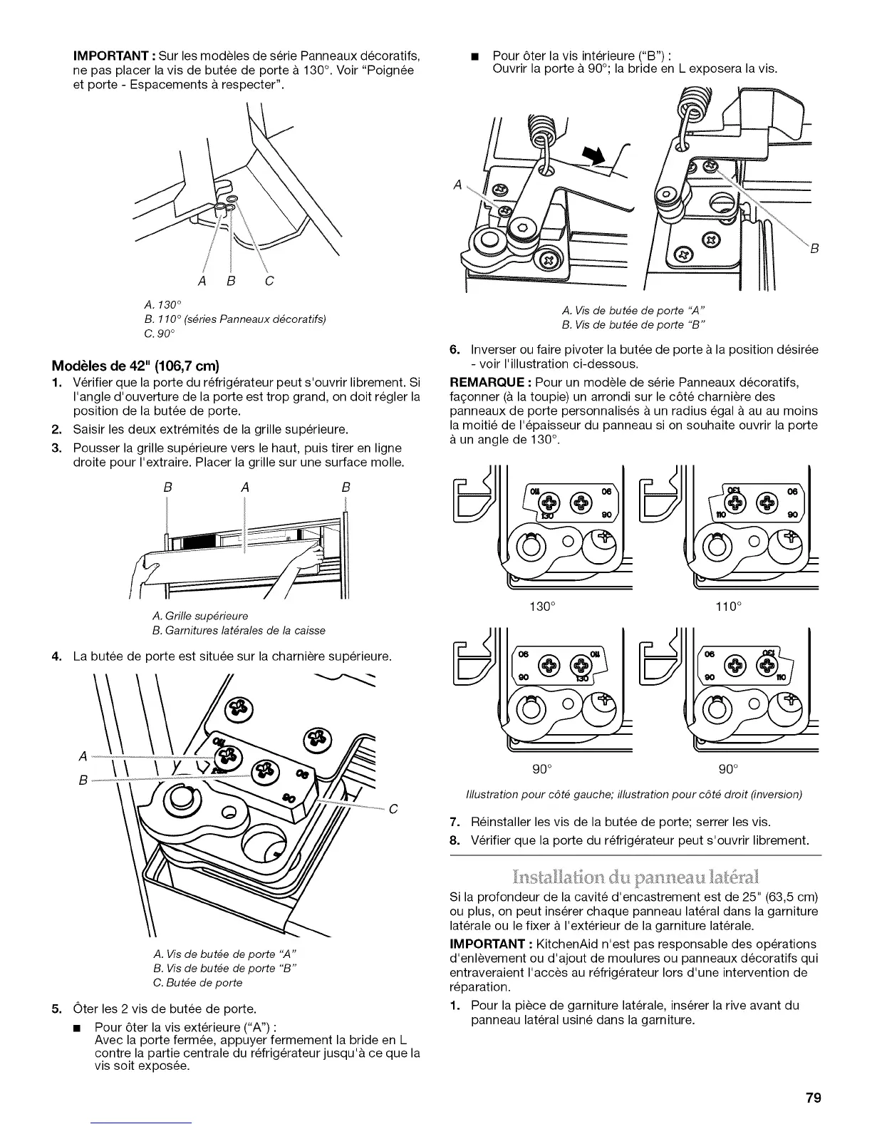 ne pas placer la vis de butee de porte & 130°. Voir "Poignee