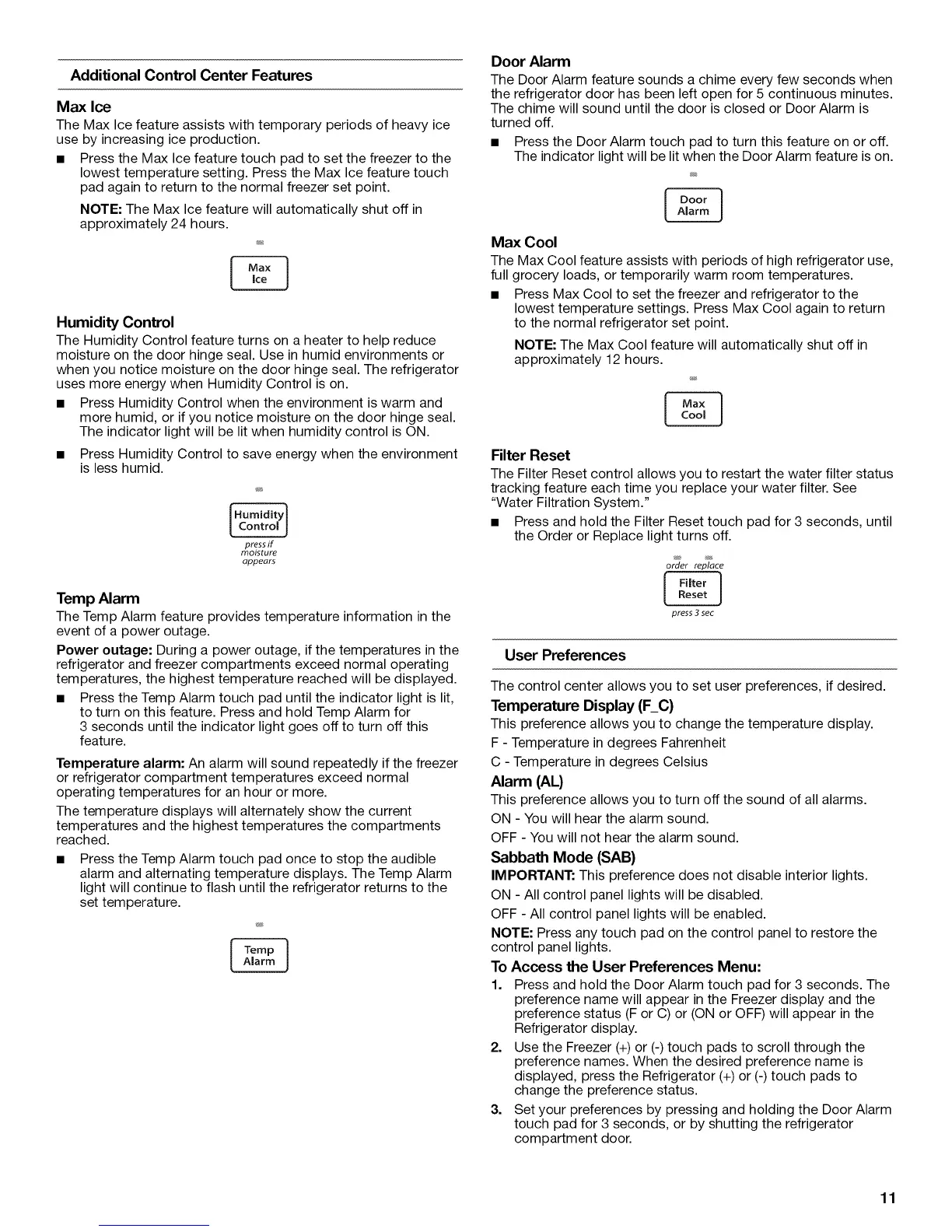 • Press the Door Alarm touch pad to turn this feature on or off.