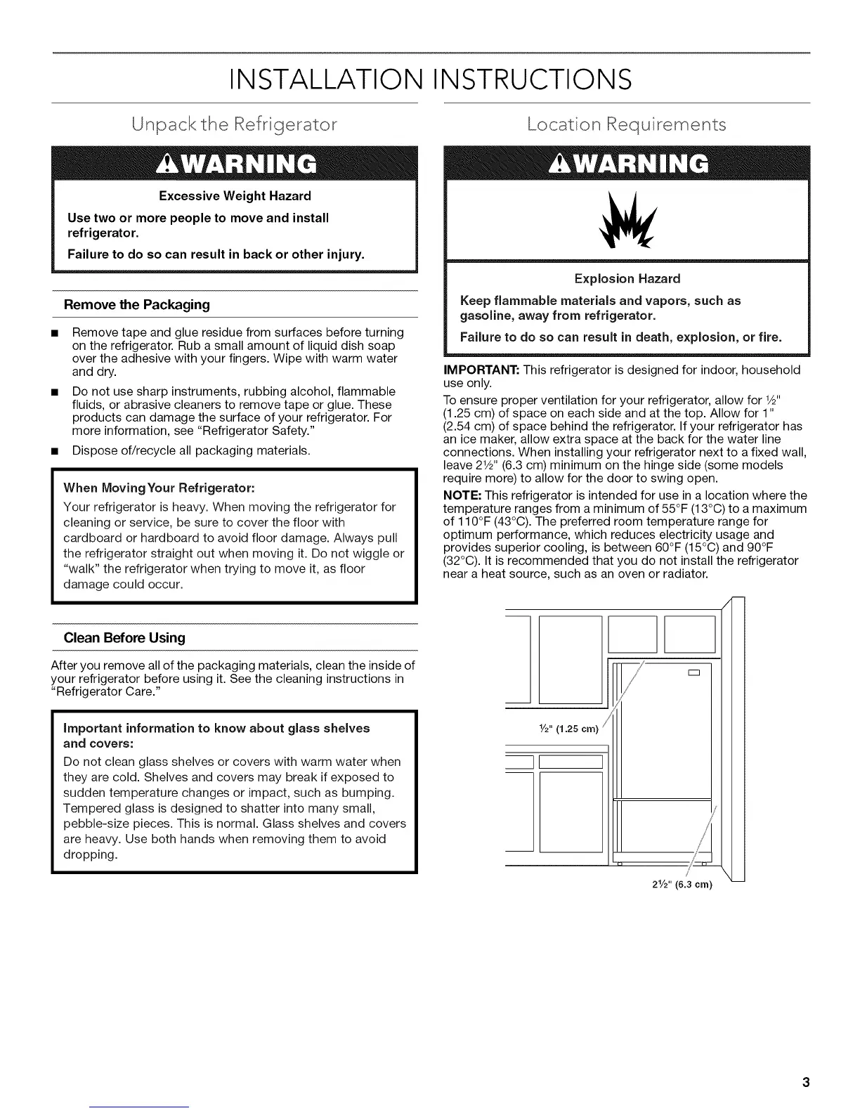 (2.54 cm) of space behind the refrigerator. If your refrigerator has
