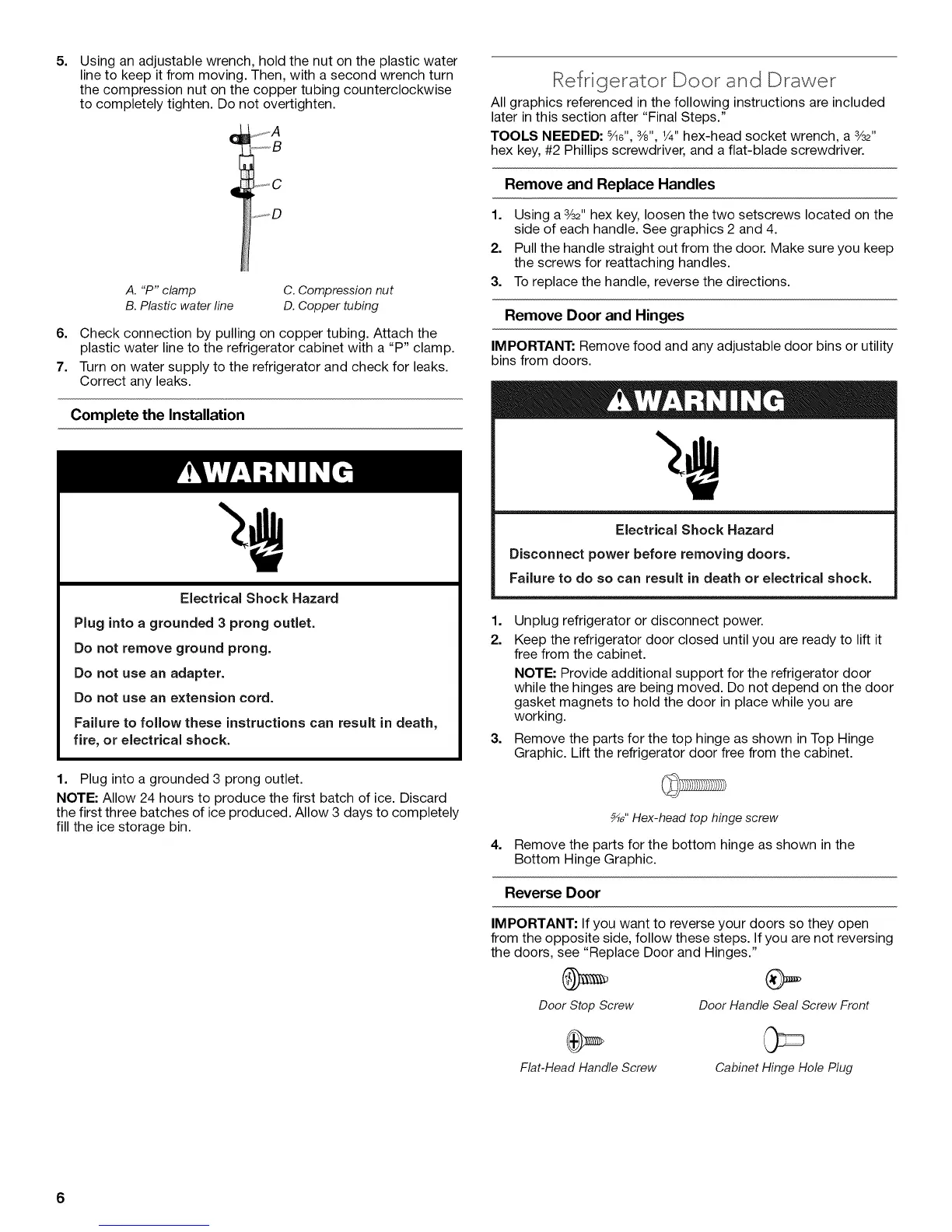 plastic water line to the refrigerator cabinet with a "P" clamp.