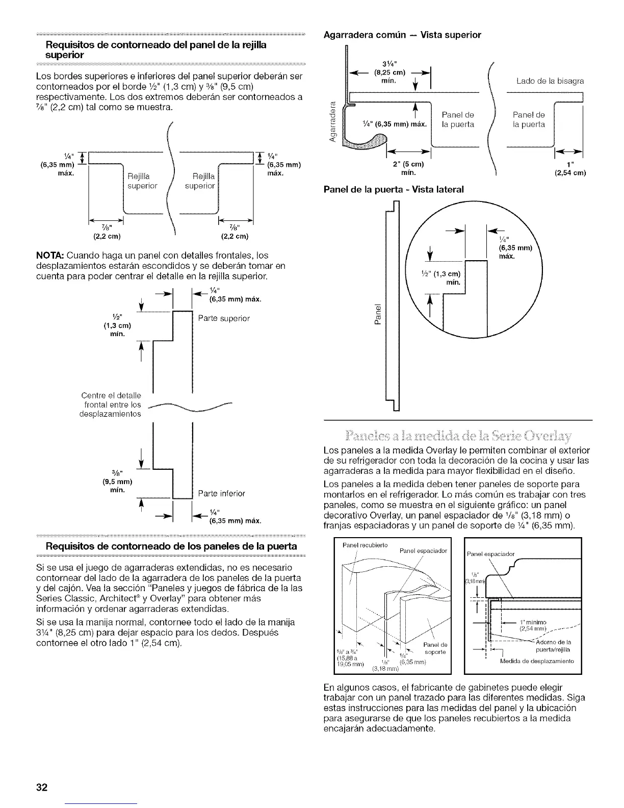 decorative Overlay, un panel espaciador de 1/8" (3,18 mm) o