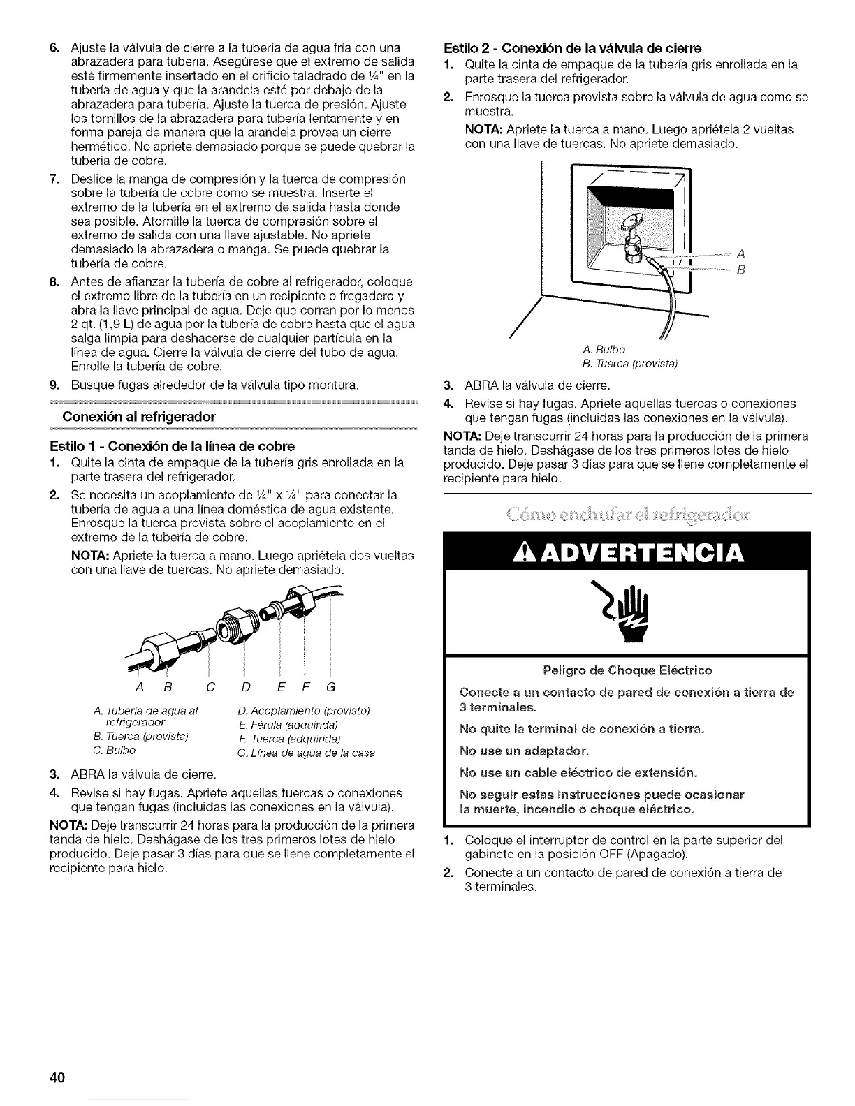 Estilo 2 - Conexibn de la v&lvula de cierre