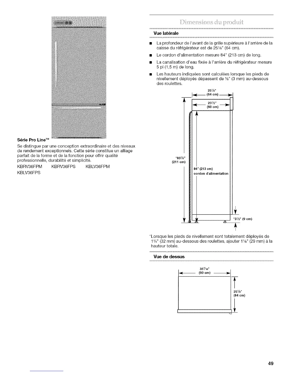 • Les hauteurs indiquees sent calculees Iorsque les pieds de