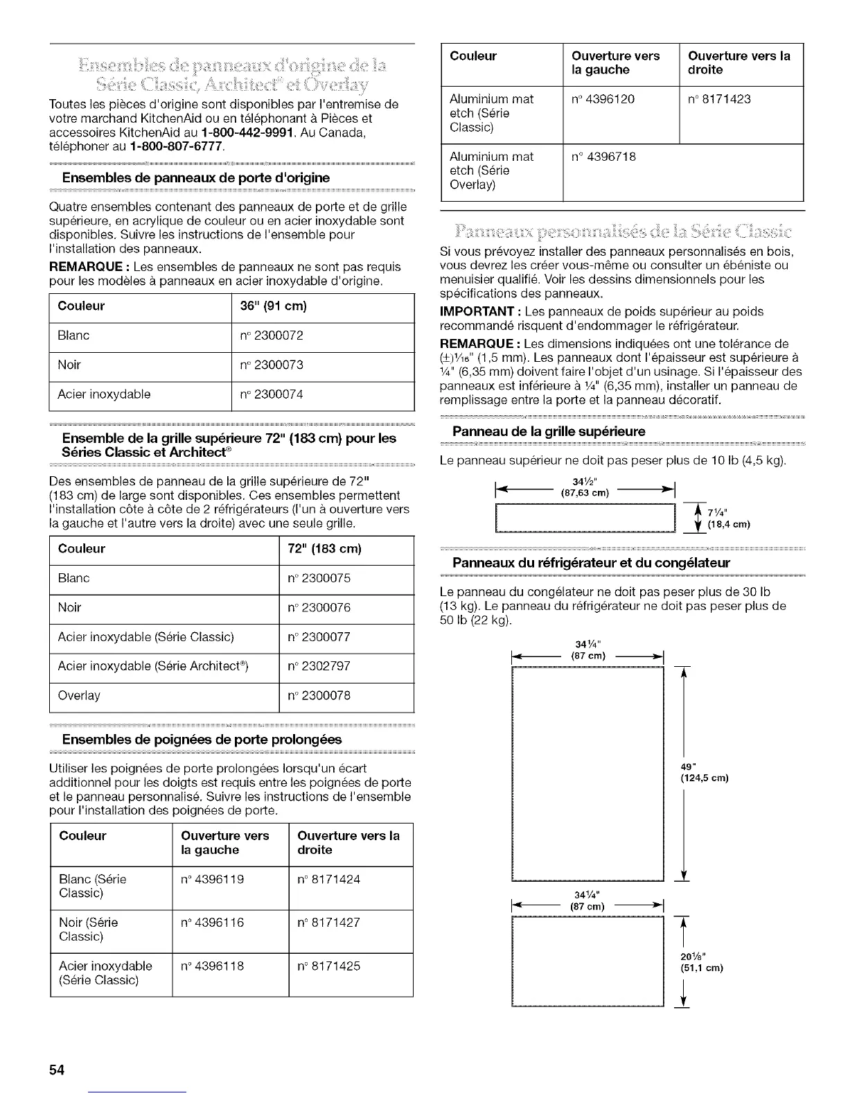 (13 kg). Le panneau du refrigerateur ne dolt pas peser plus de