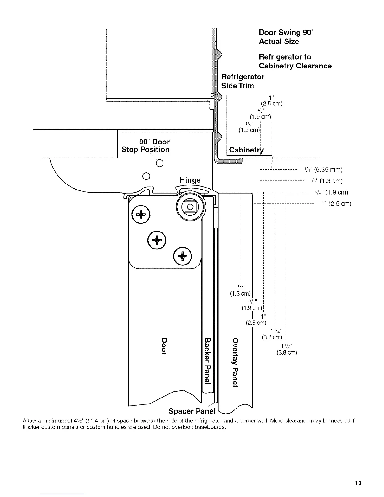 Allow a minimum of 41/2'' (11.4 cm) of space between the side of the refrigerator and a corner wall. More clearance may be needed if