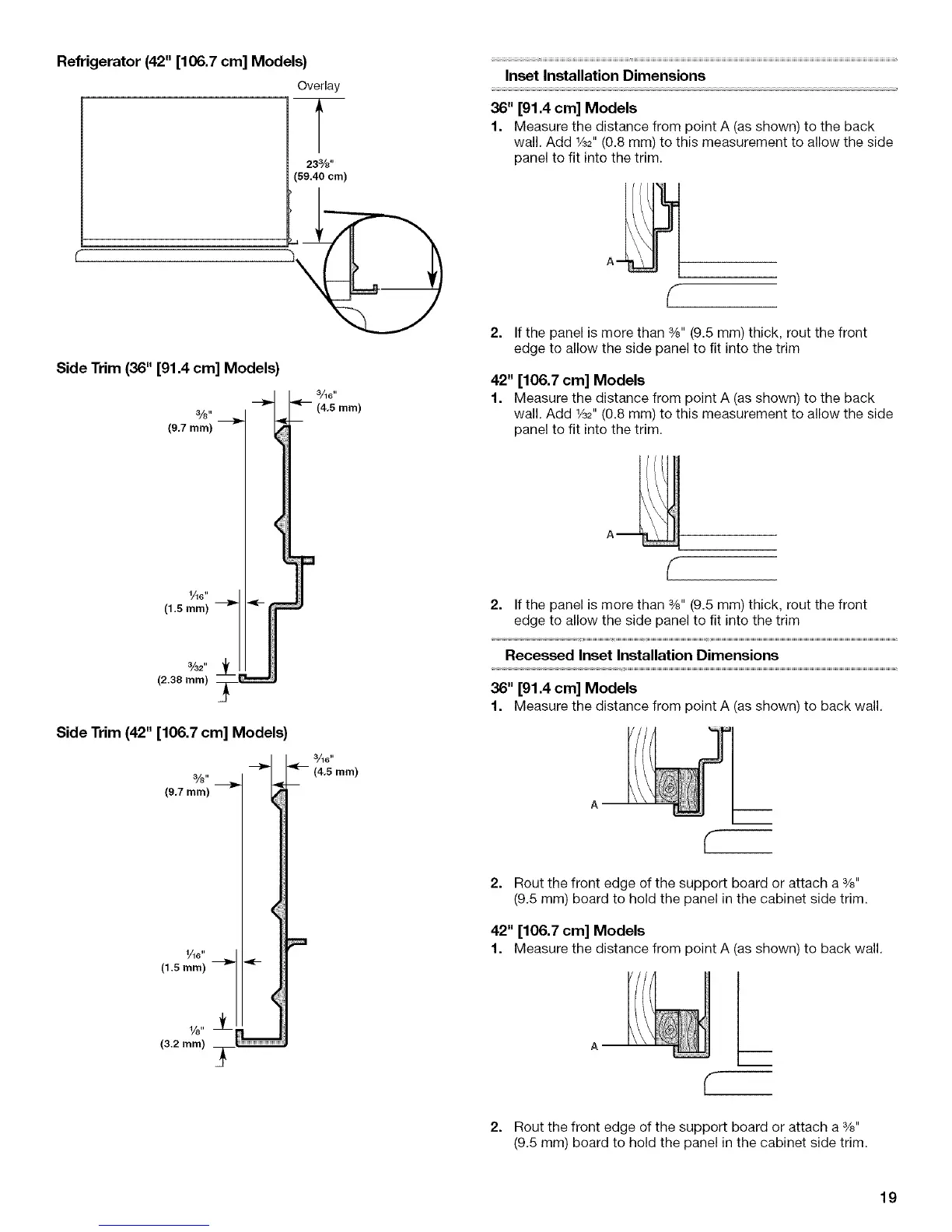 (9.5 mm) board to hold the panel in the cabinet side trim.