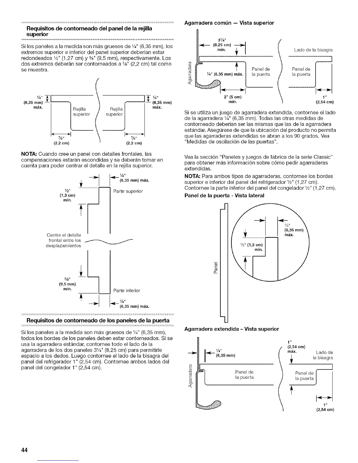 superior e inferior del panel del refrigerador 1/2"(1,27 cm).