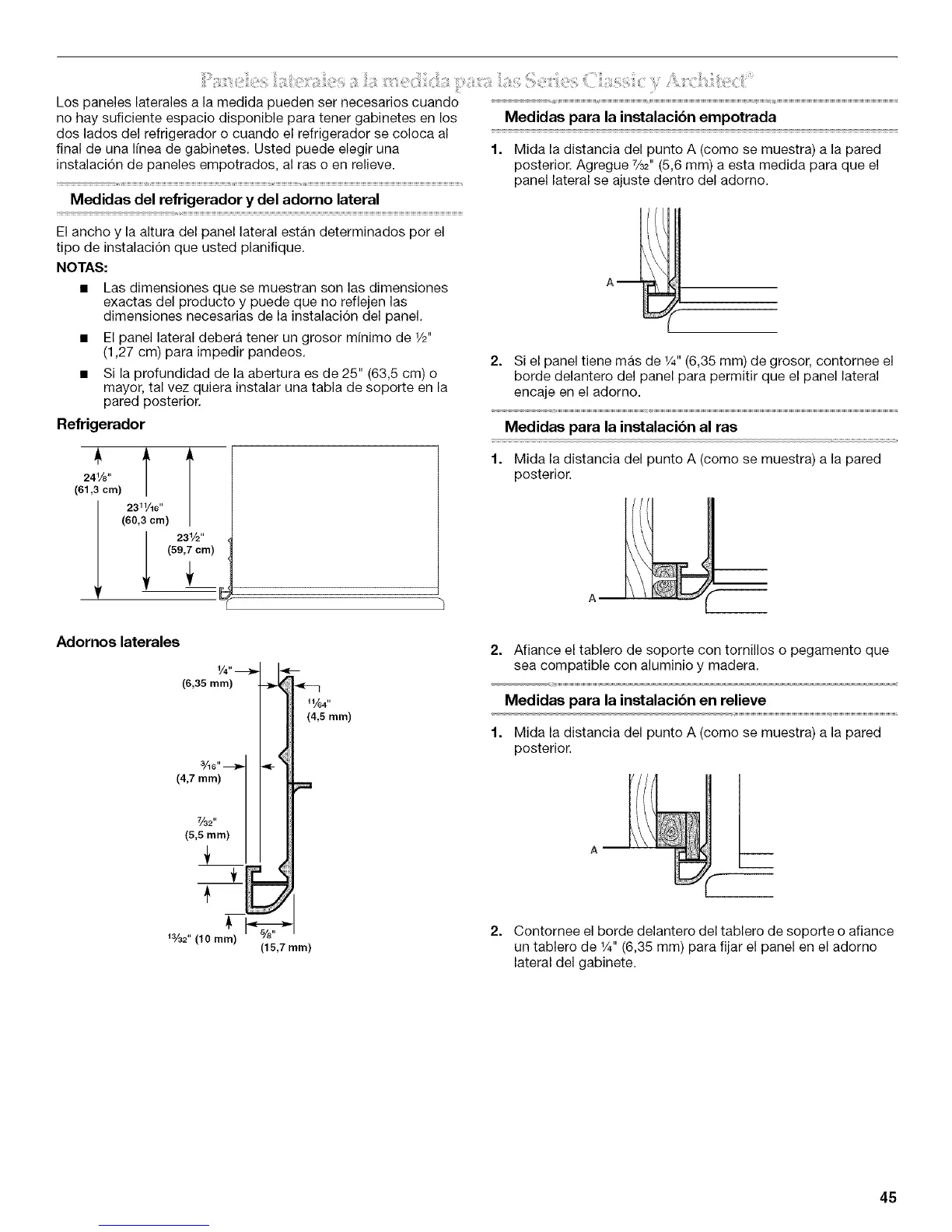 Medidas del refrigerador y del adorno lateral